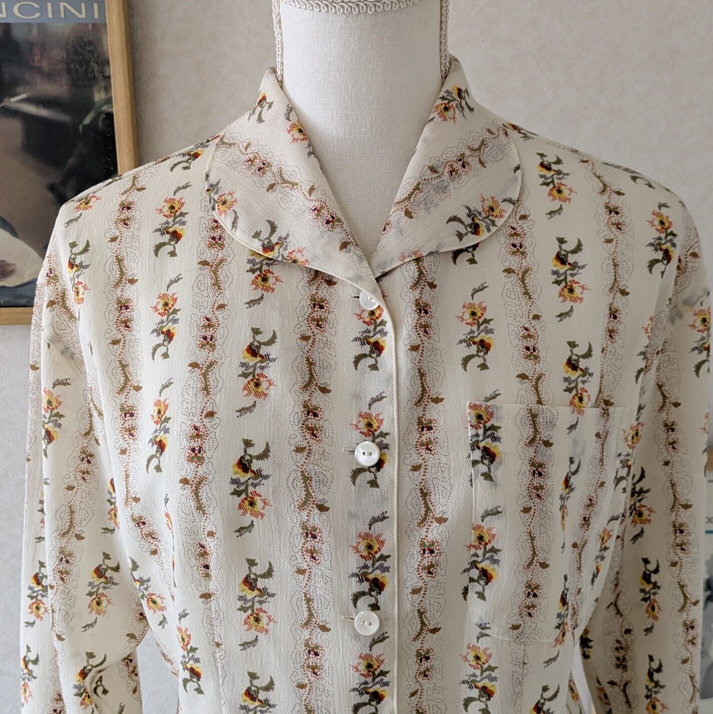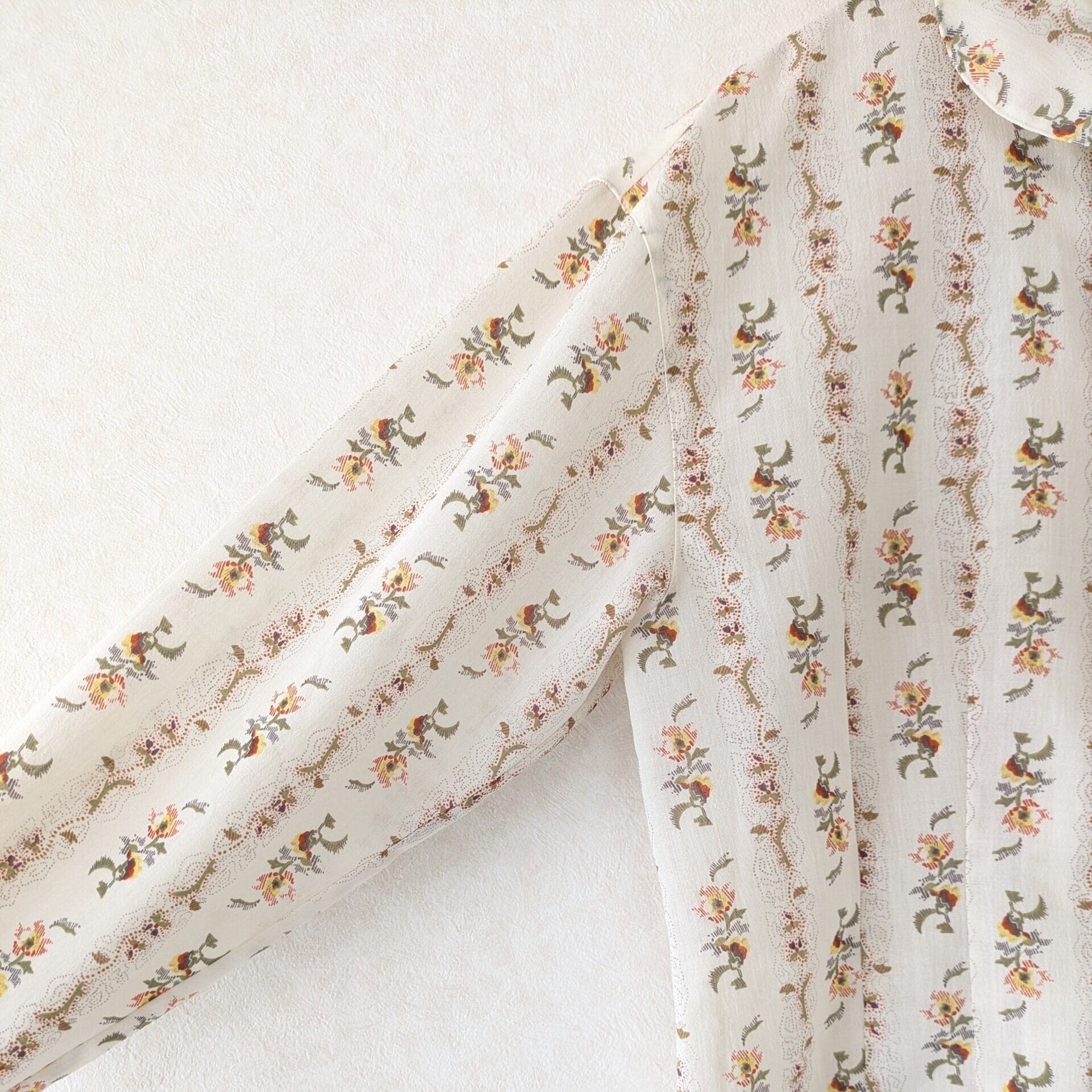 【昭和レトロ】花柄ブラウス オフホワイト サイズM程度 used レディース古着