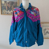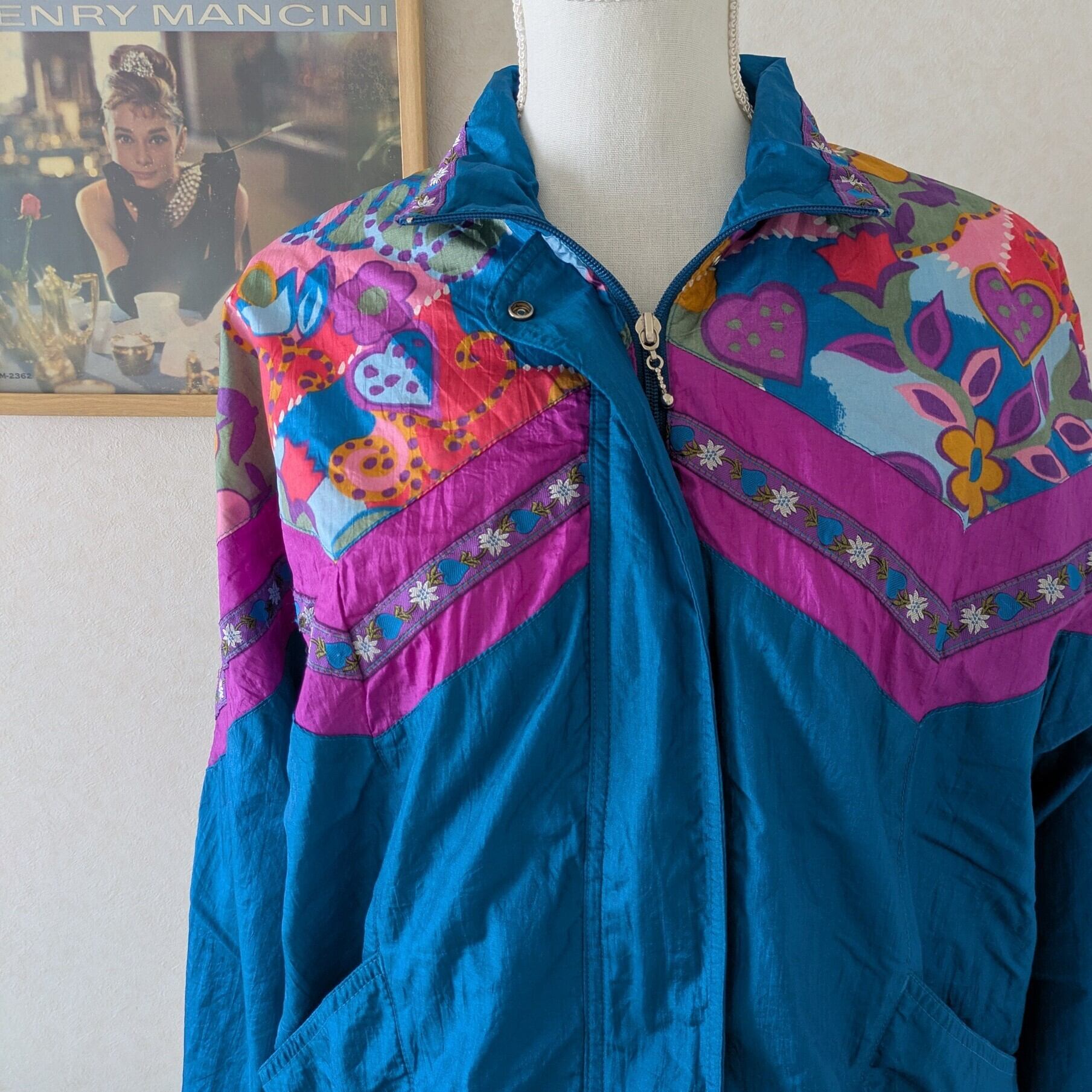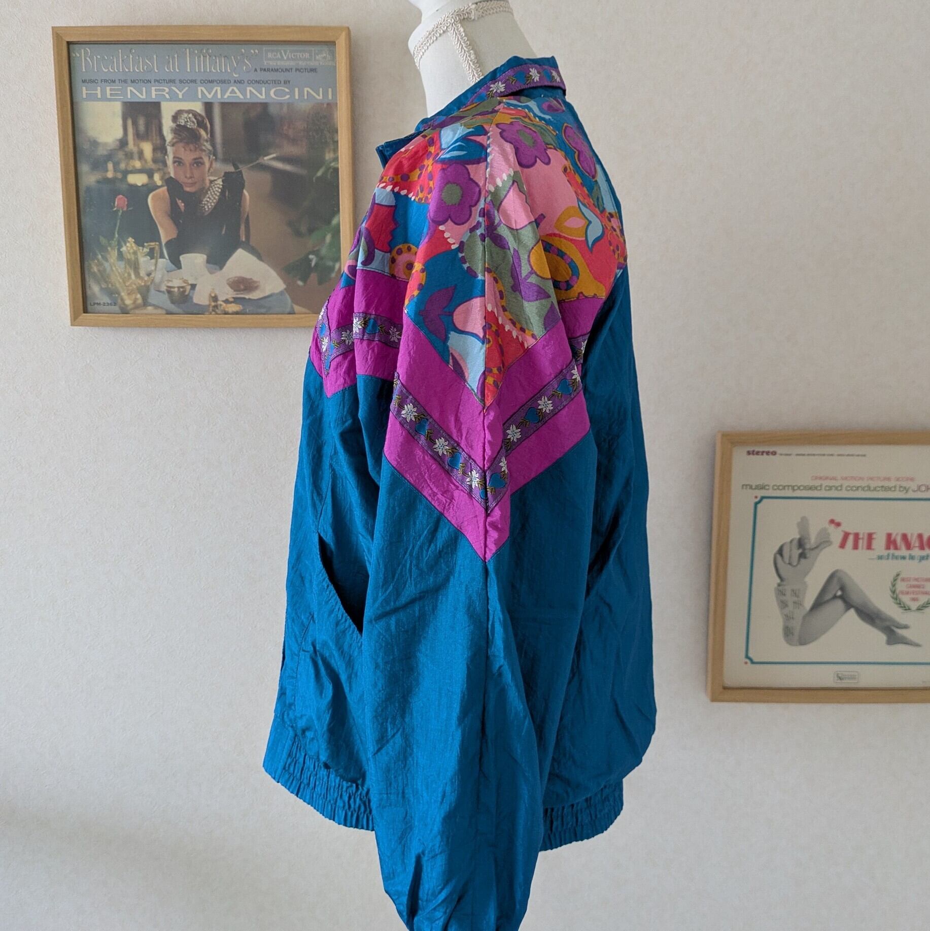 肩のサイケな柄がレトロなナイロンジャケットです。