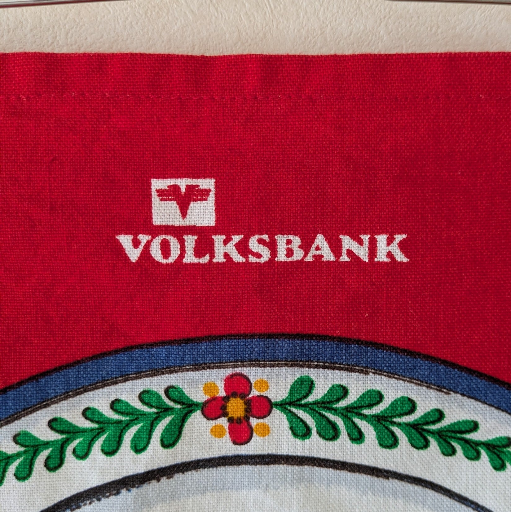 ドイツの銀行「VOLKSBANK」のアイテムで、鮮やかな赤に極彩色の鳥のコントラストがとてもきれい。