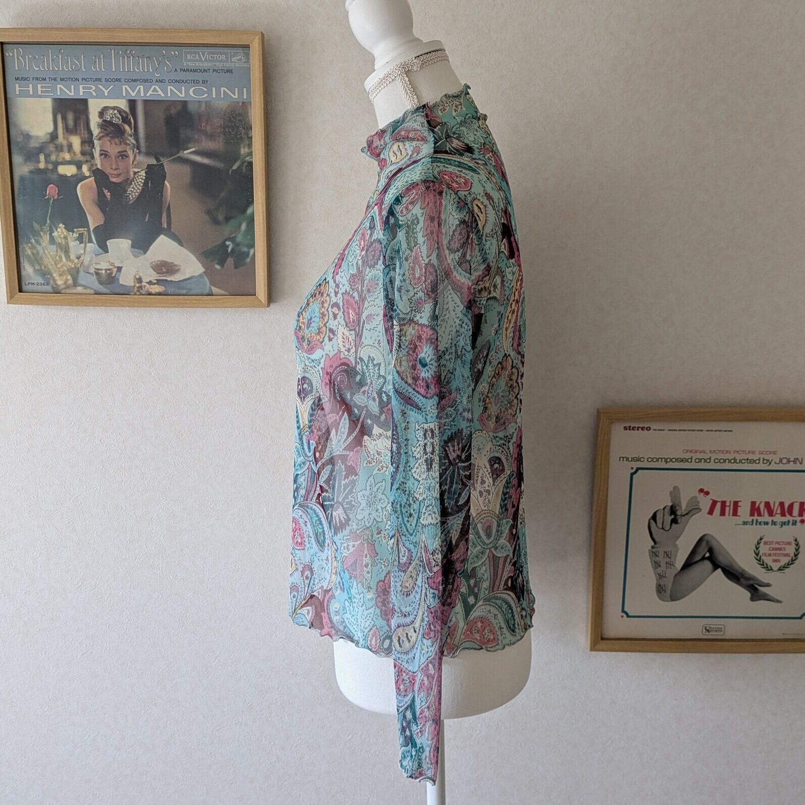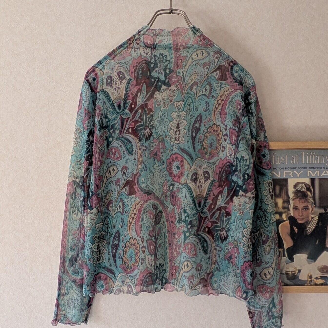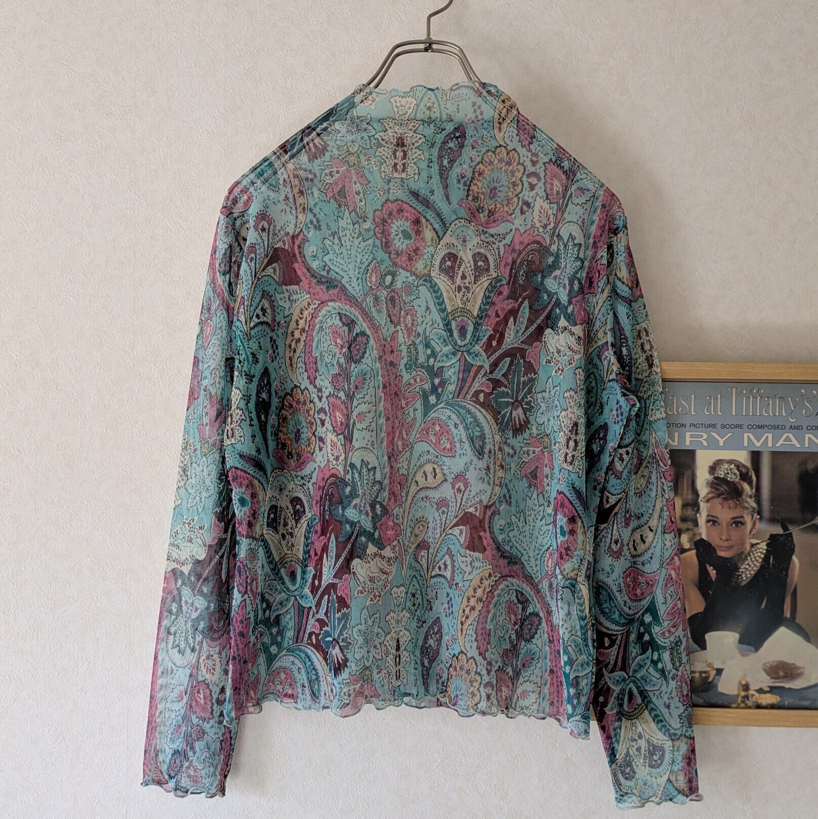 ブルーと赤茶系のペイズリーのような大きな柄がキレイなシアーインナーです。