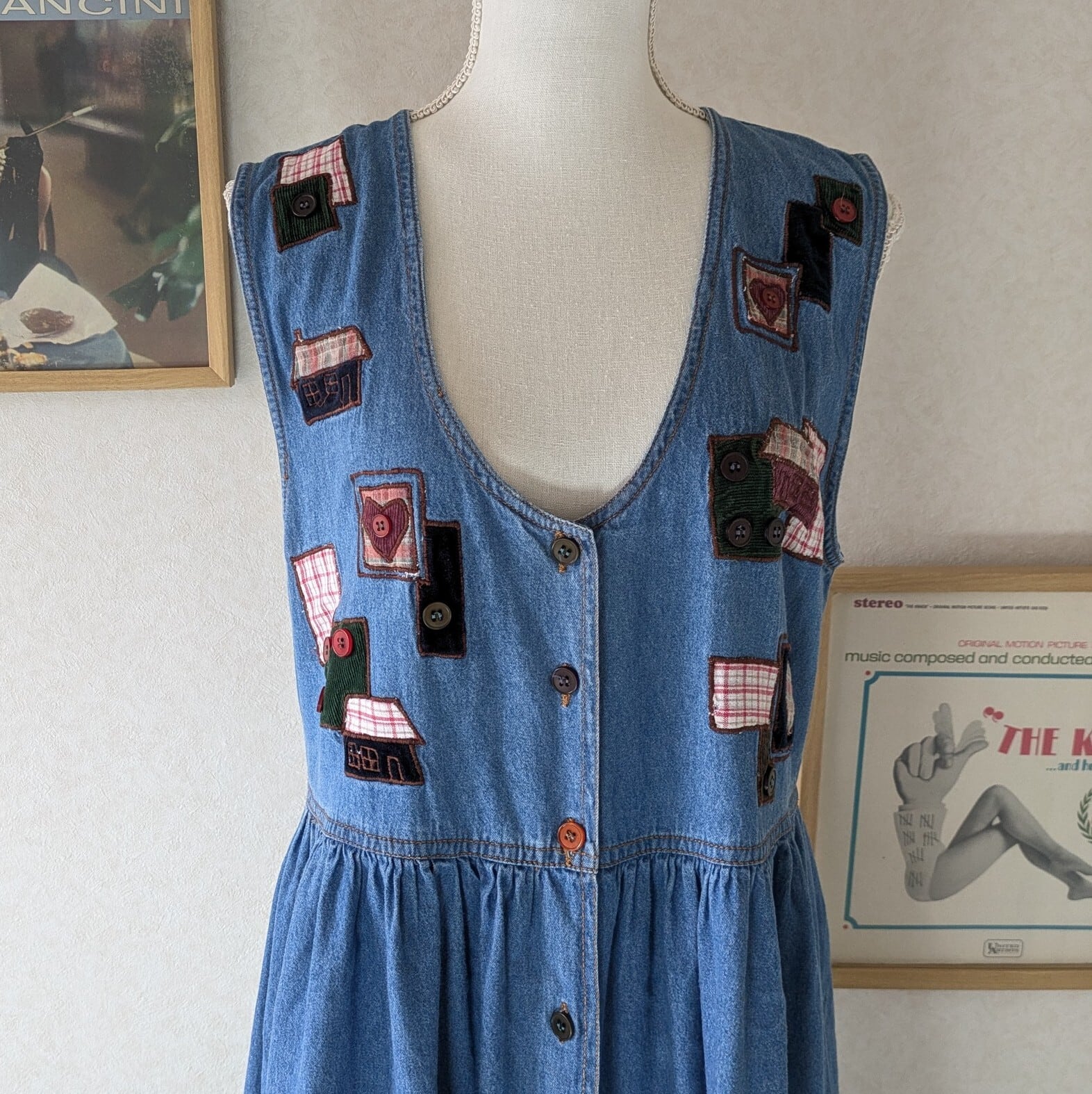 やわらかいデニム素材にレトロでカントリーなワッペンが付いたワンピースです。