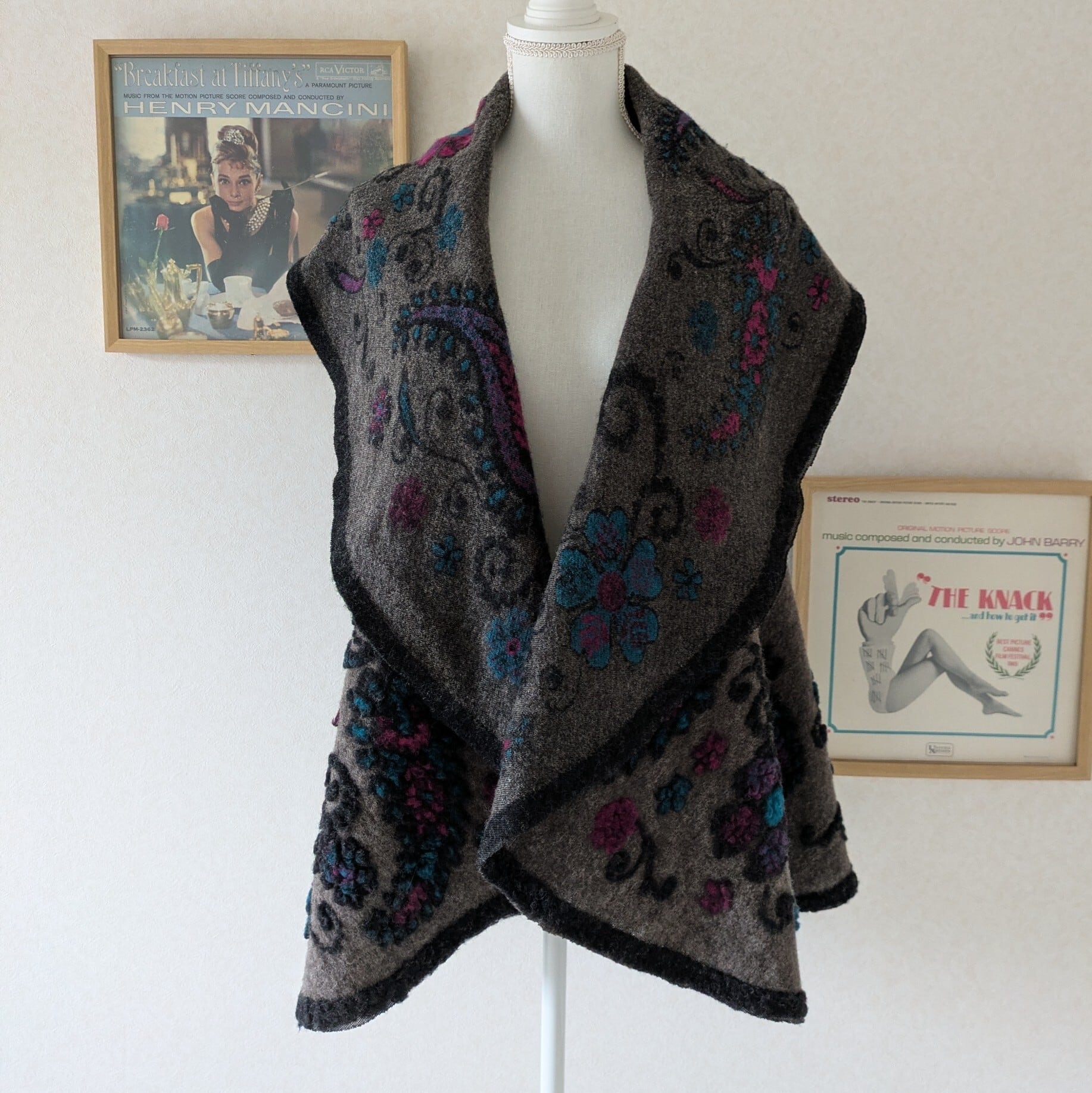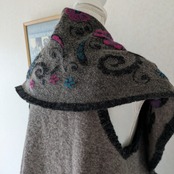 大きな楕円形に腕を通す穴があいた、不思議な形のポンチョです。