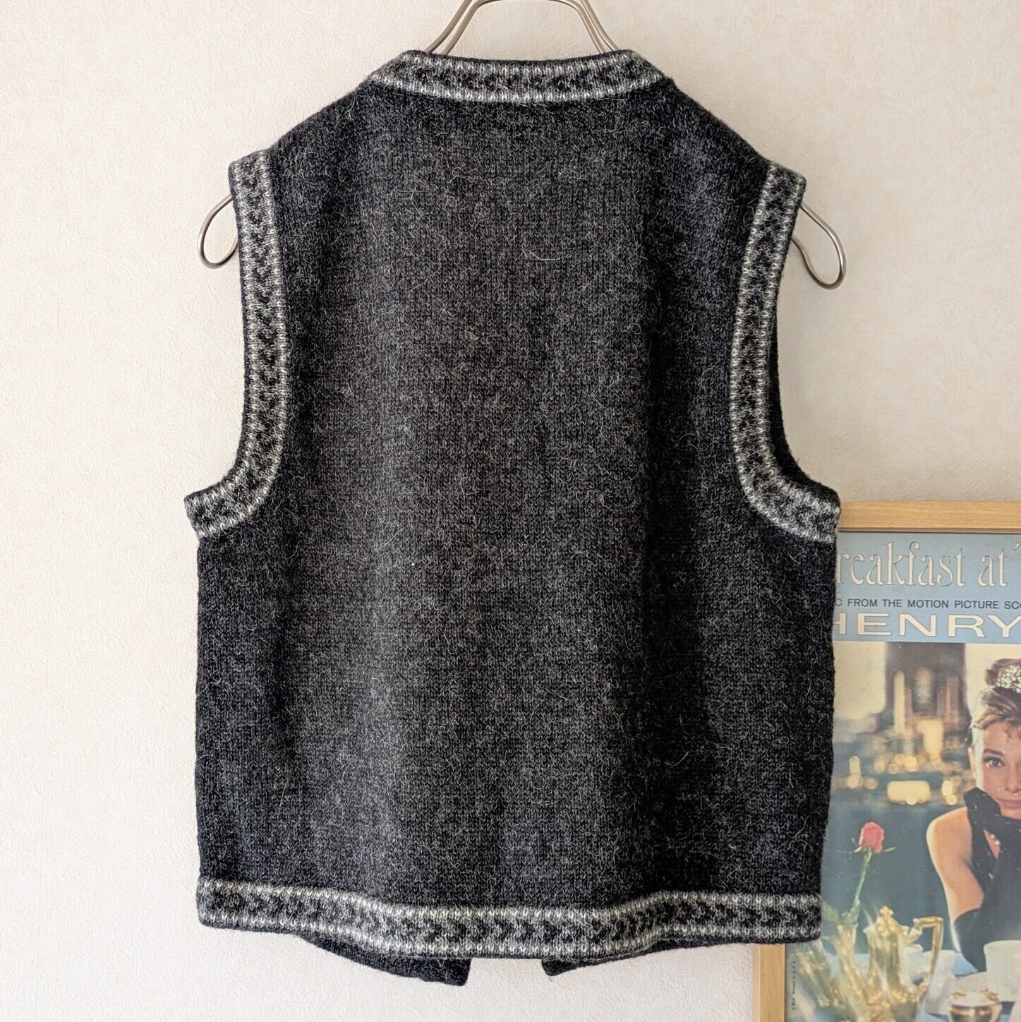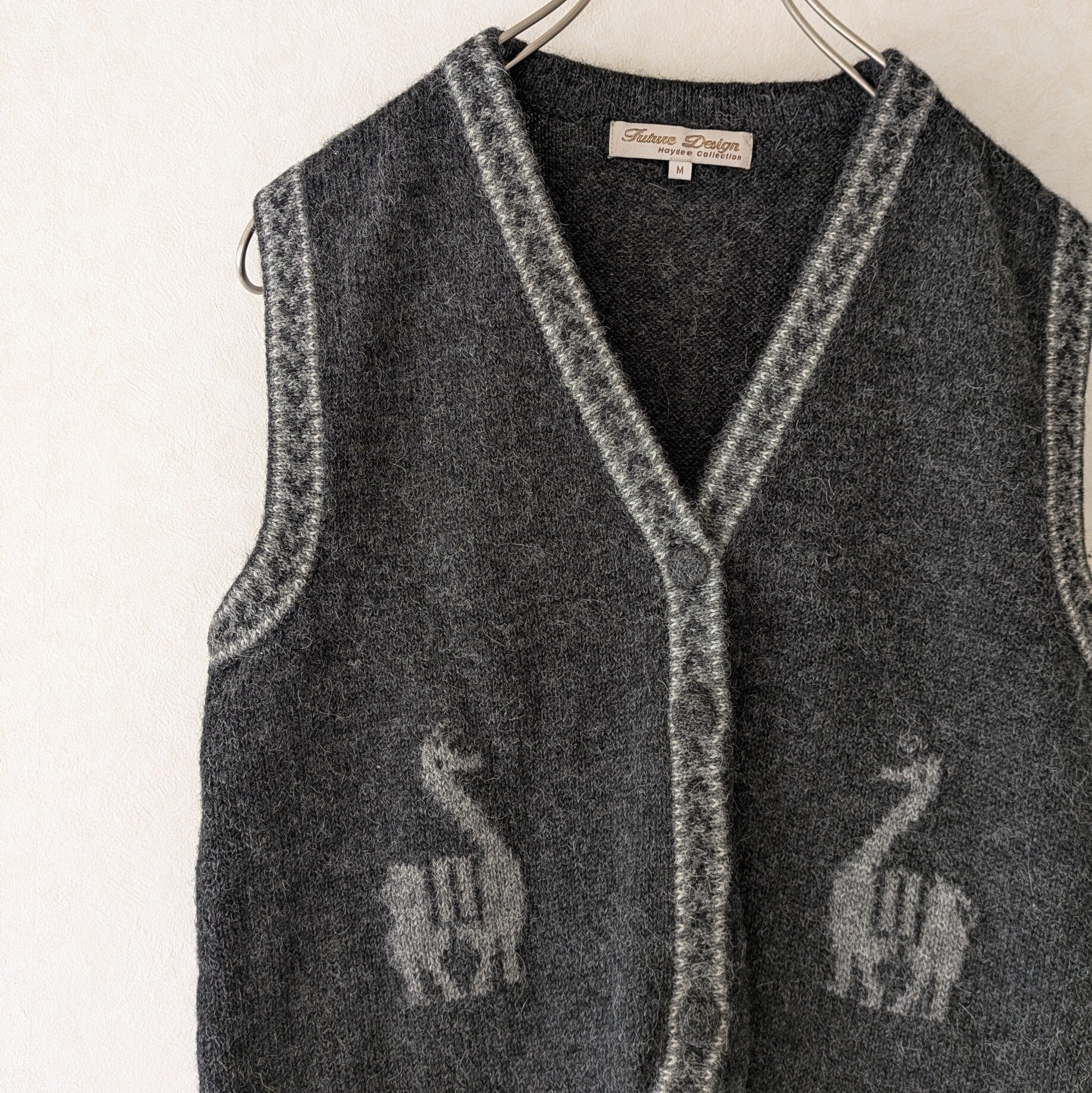 アルパカのワンポイントが可愛いフォークロア調のベストです。