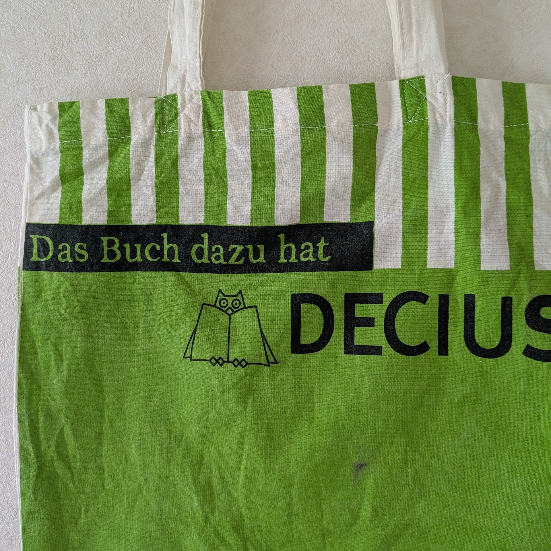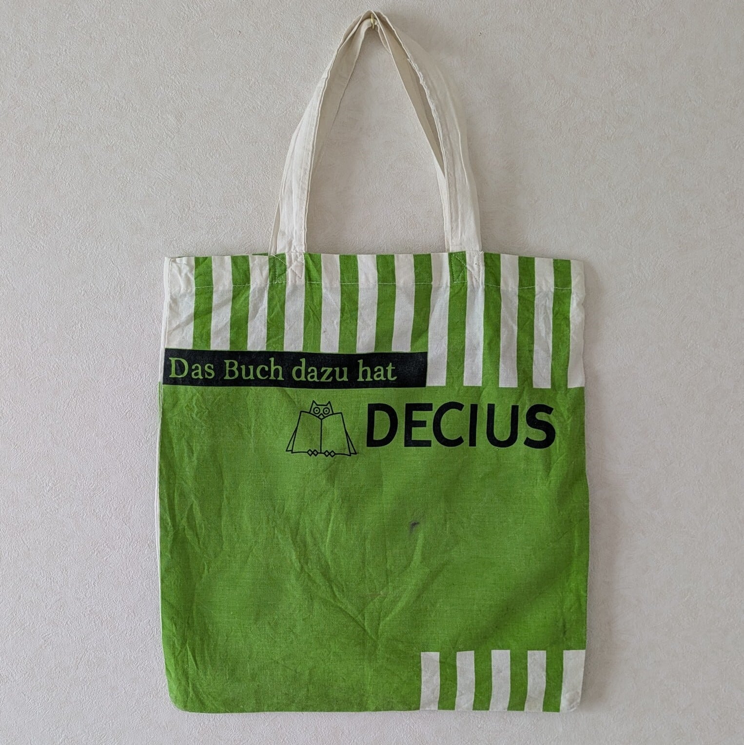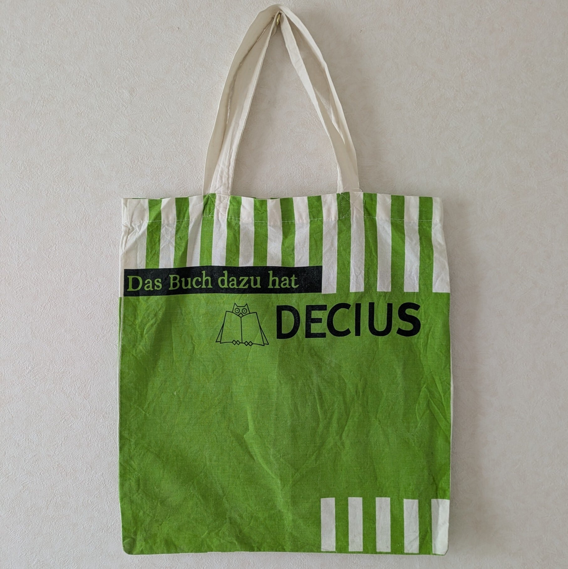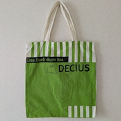 渋めの若草色に本を読むフクロウのイラストの入ったエコバッグです。