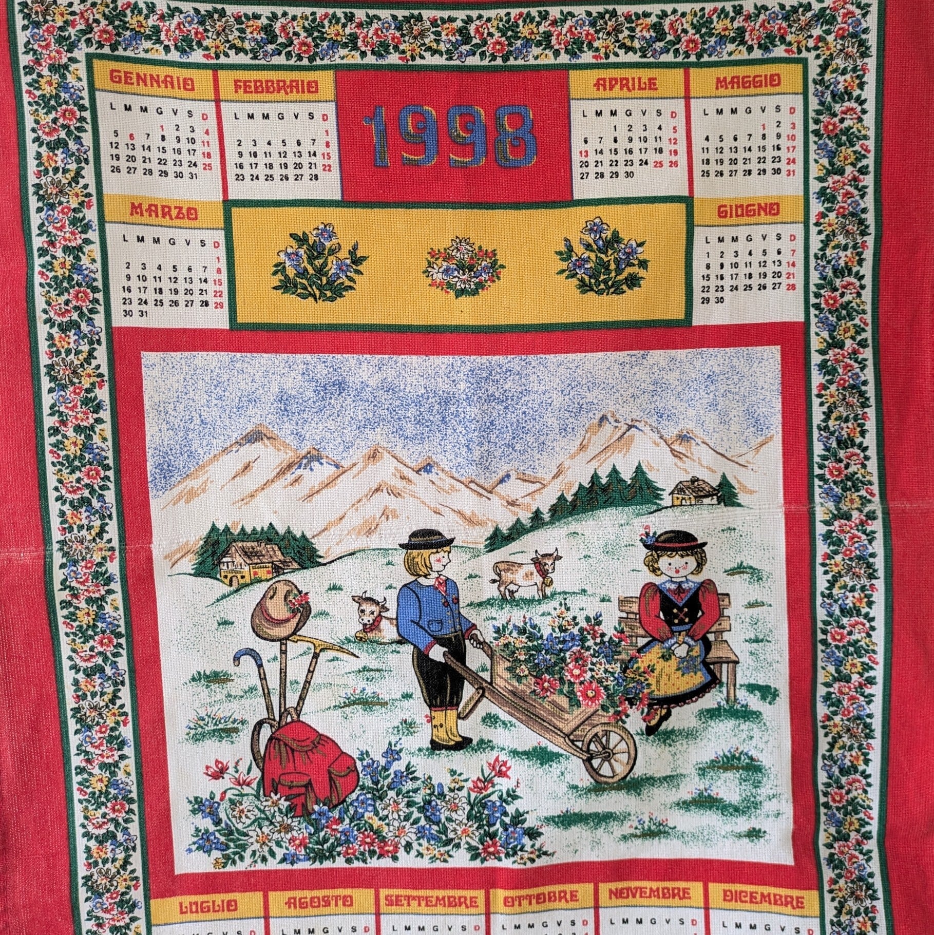 【1998年】ファブリックカレンダー タペストリー ティータオル アルプスの風景