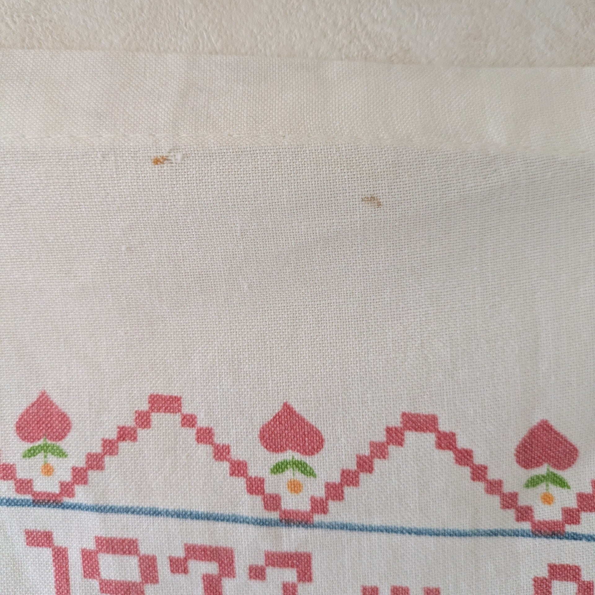 クロスステッチのような柄とカラフルなモチーフがとてもレトロな雰囲気です。
