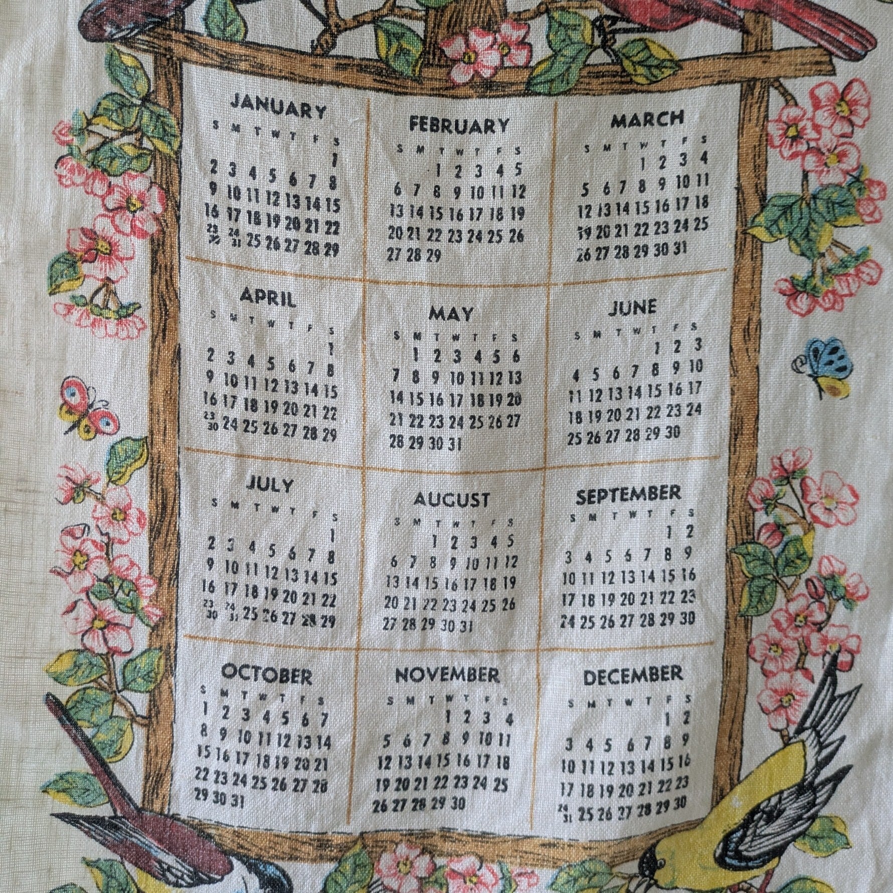 【1972年】ファブリックカレンダー タペストリー ティータオル 小さな鳥小屋