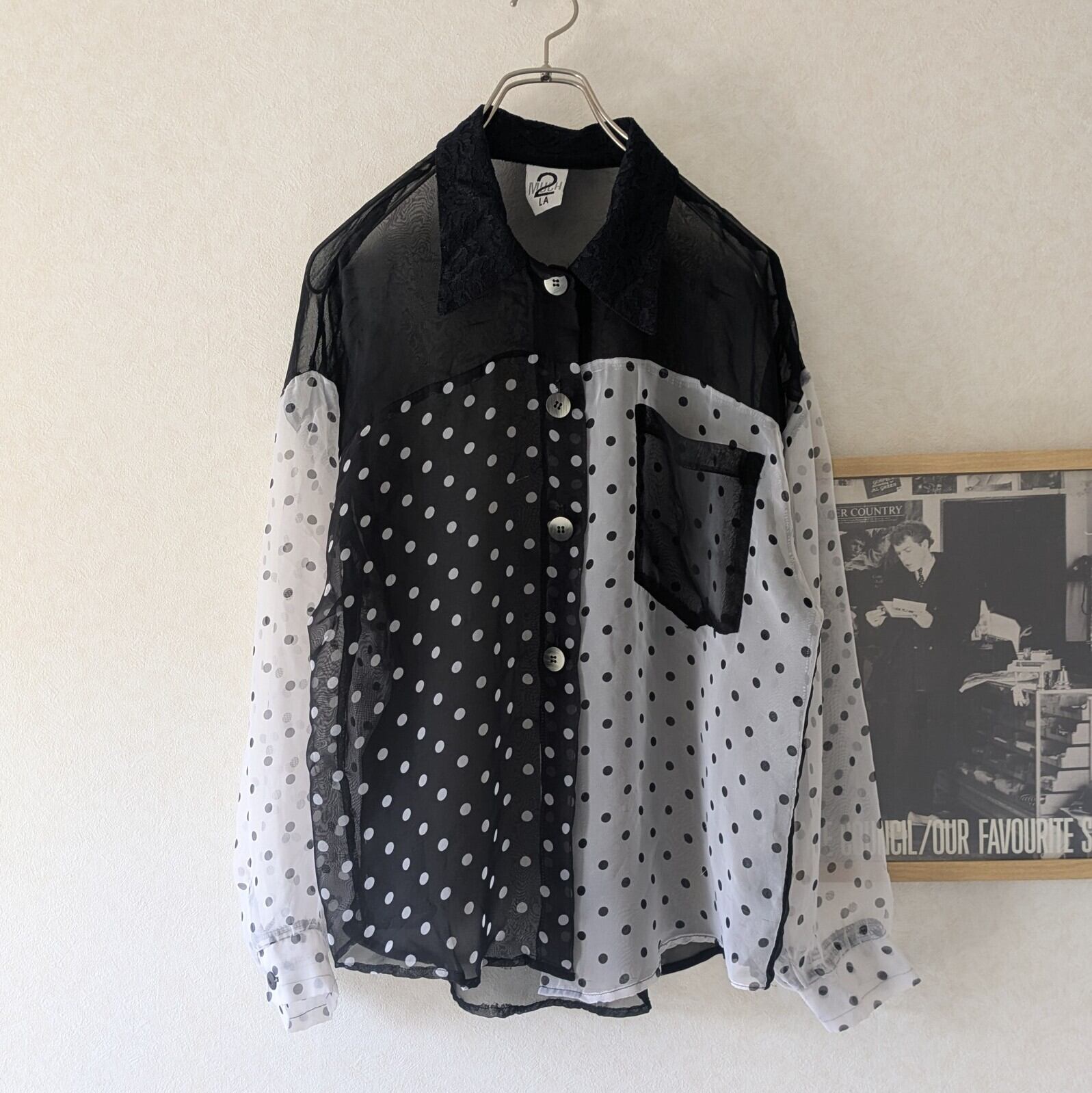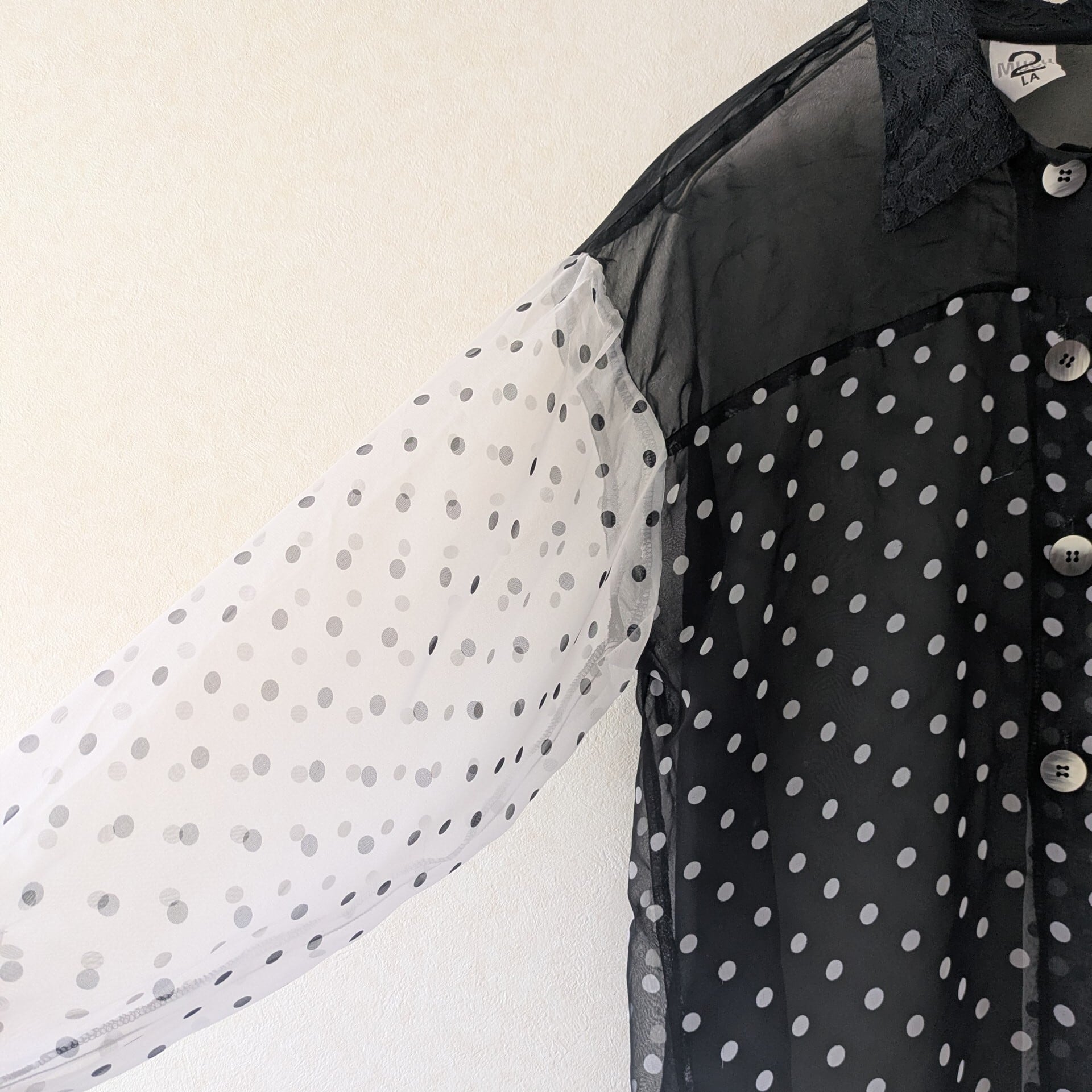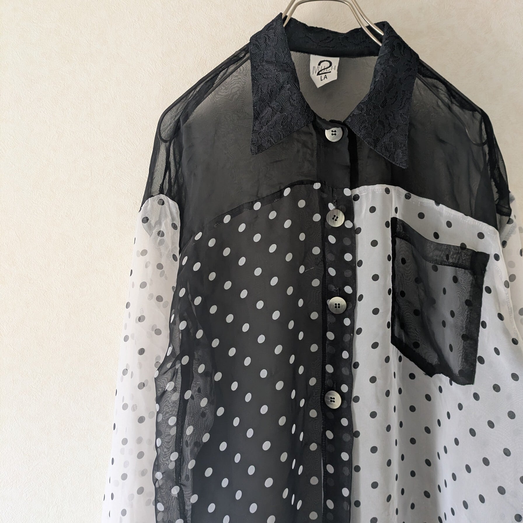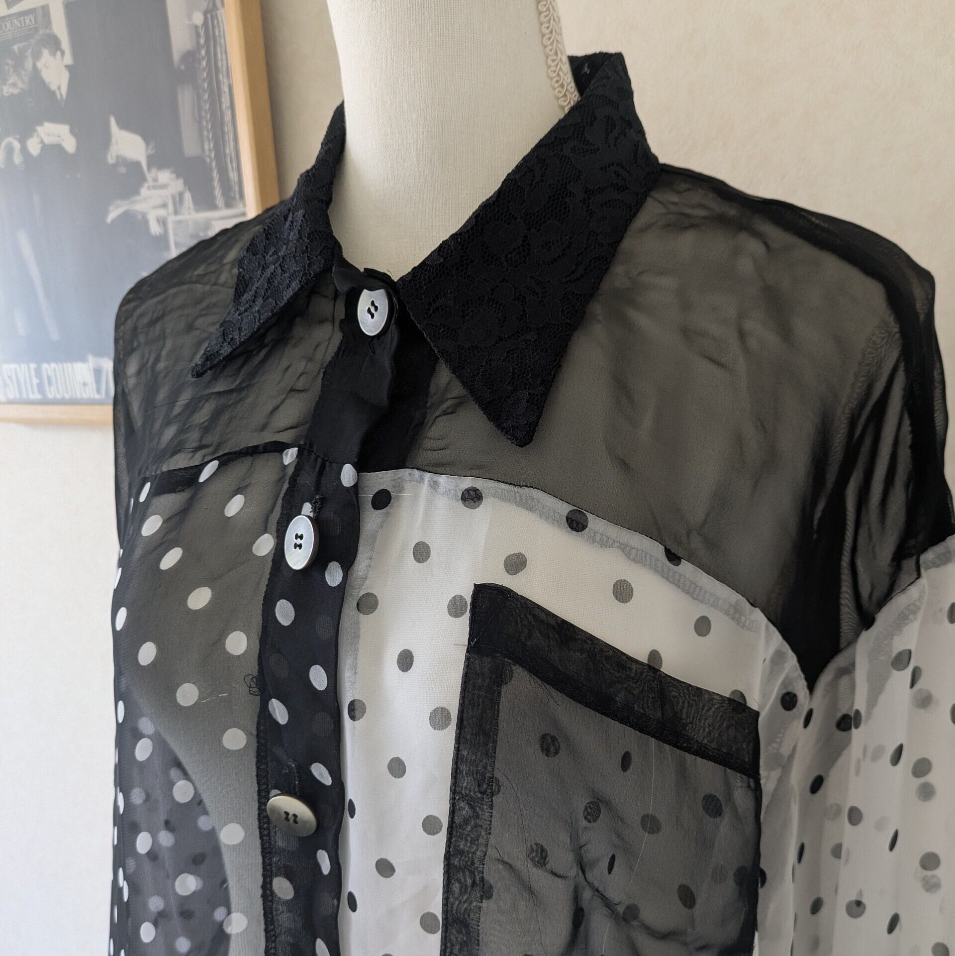 モノトーンのドット柄が遊び心溢れるシアーシャツです。