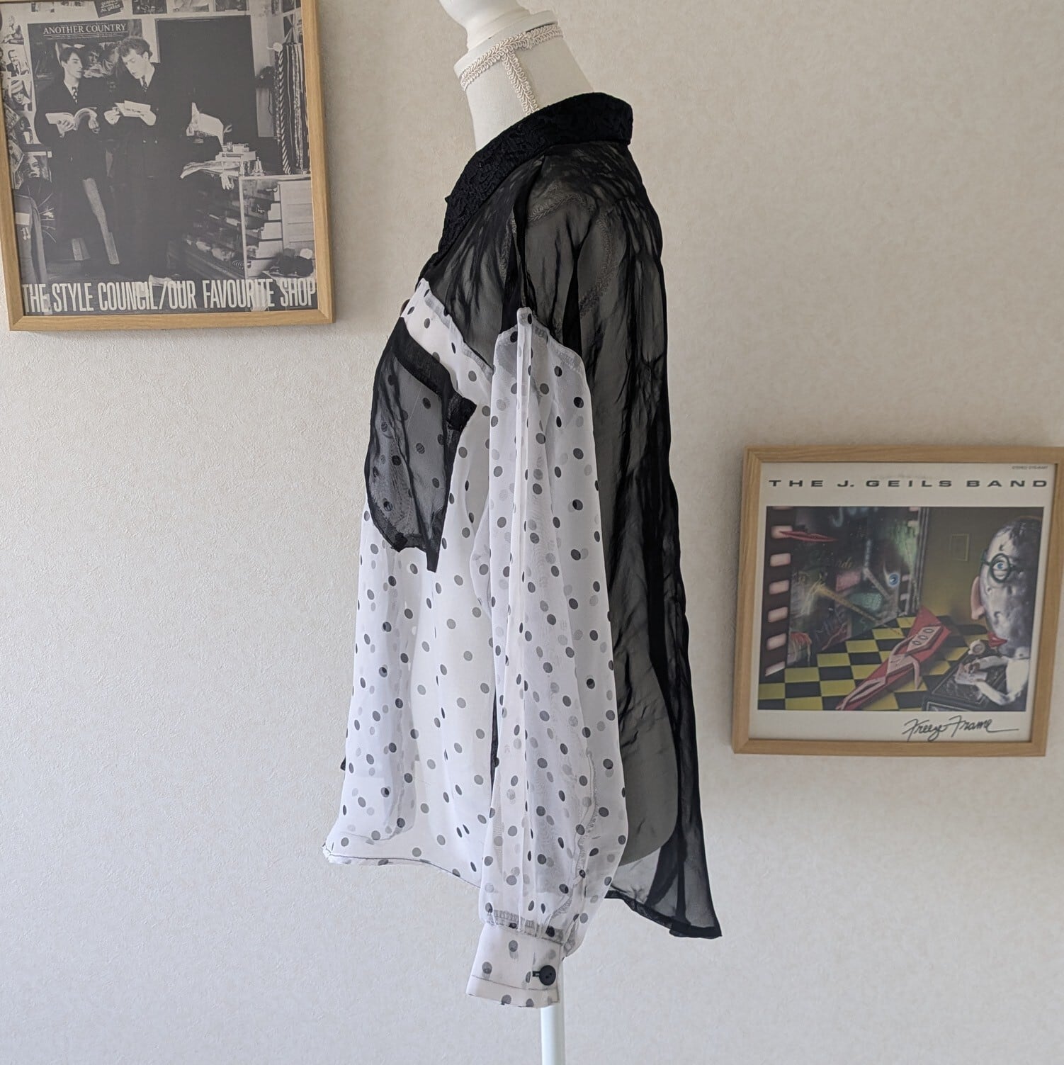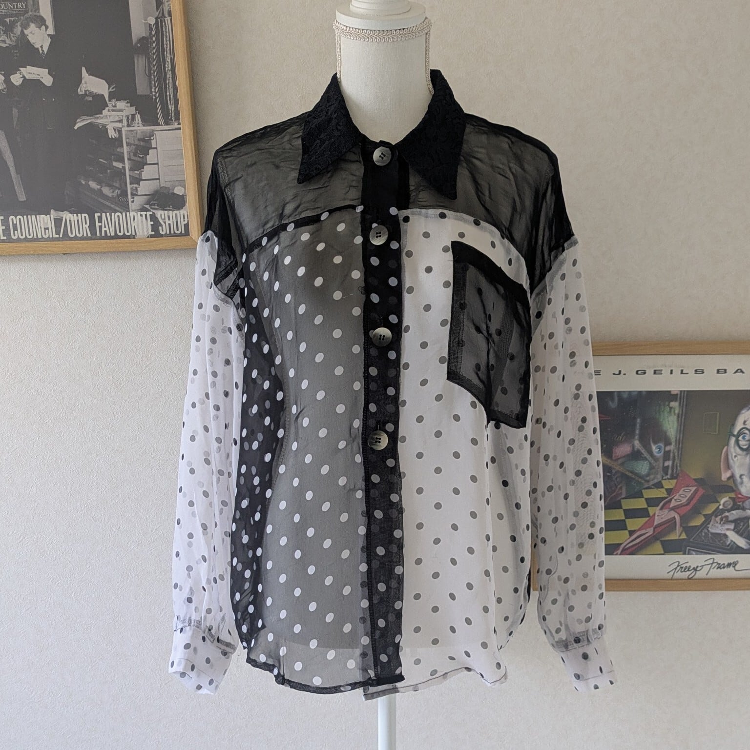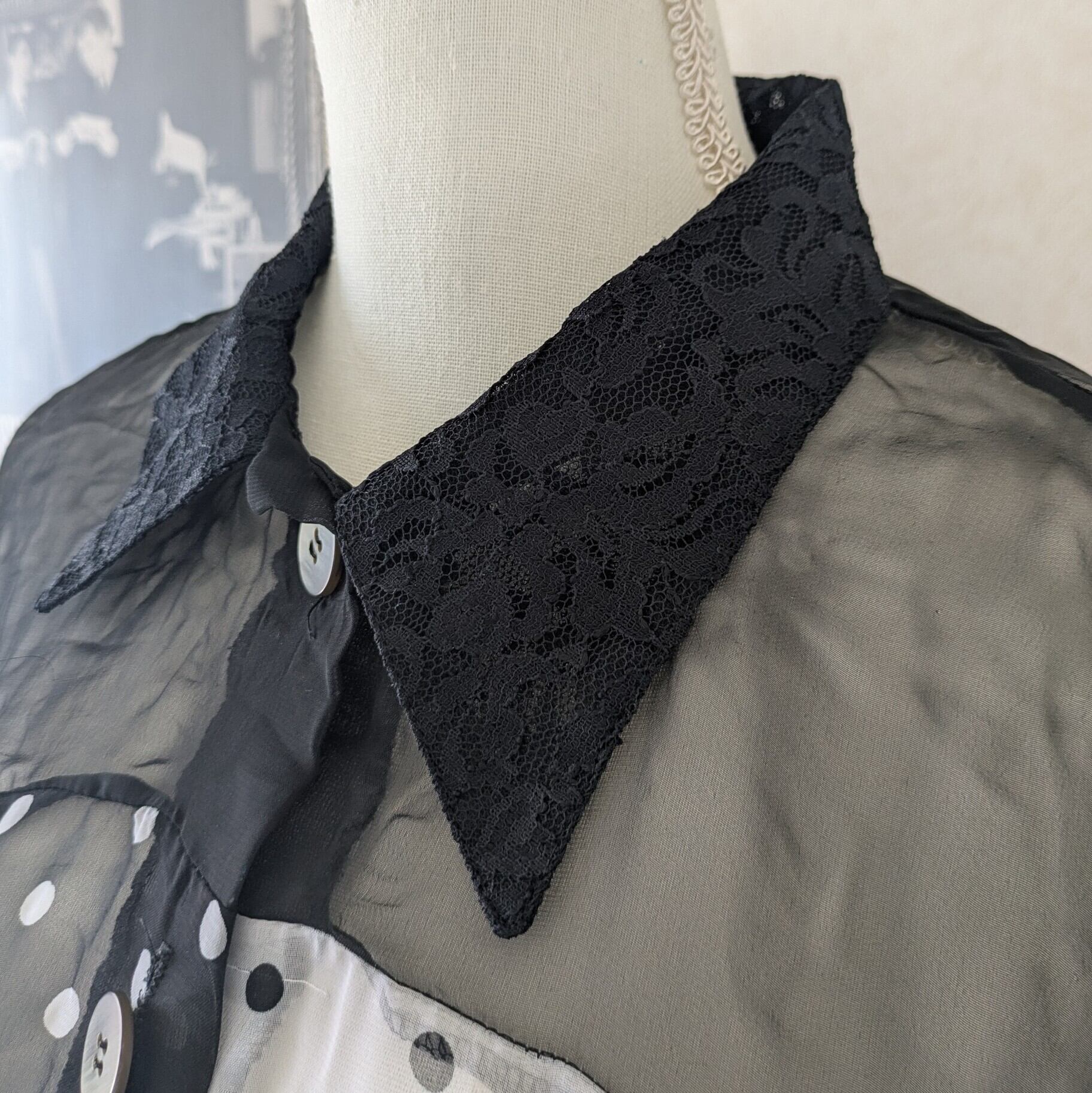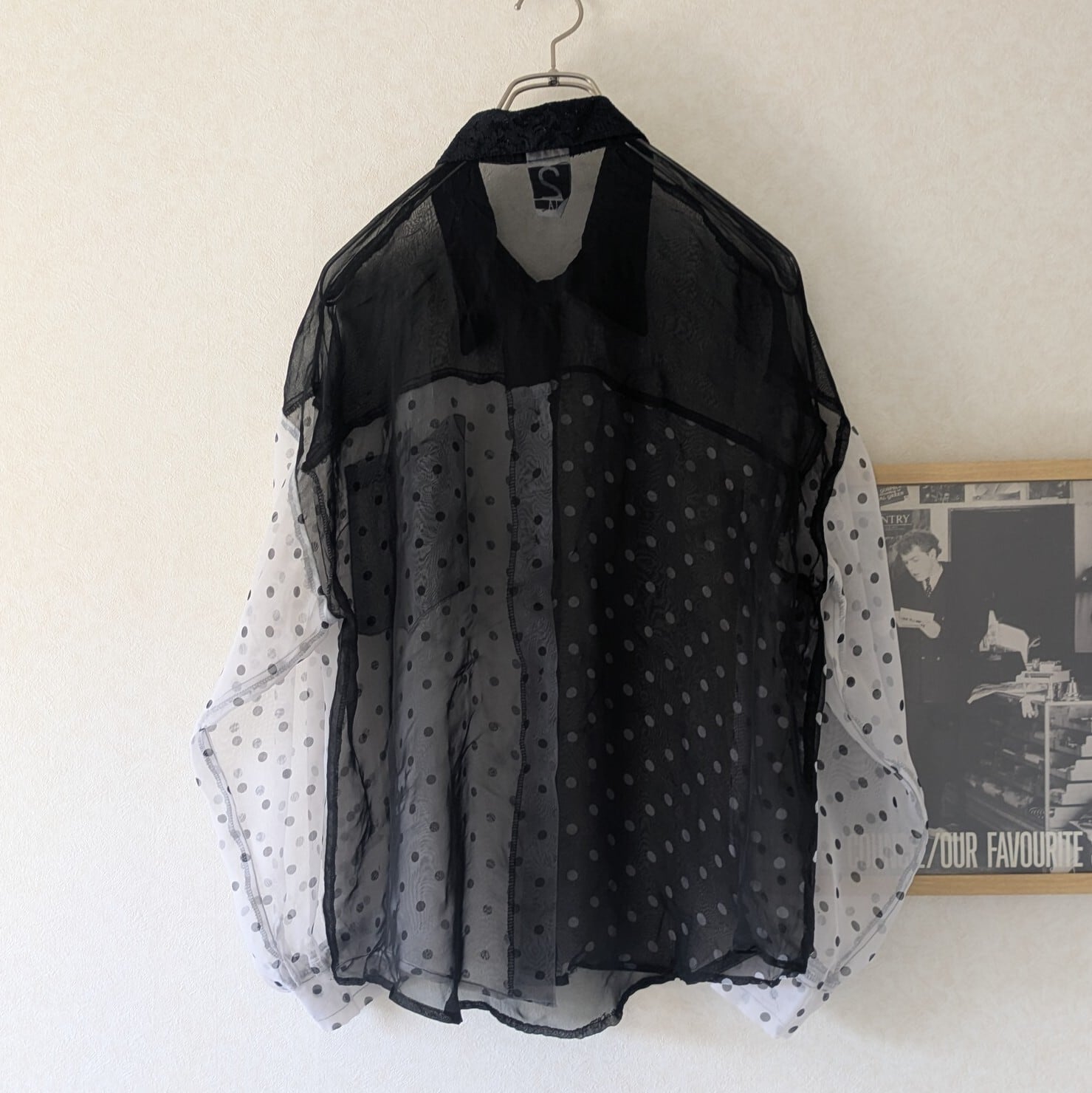 モノトーンのドット柄が遊び心溢れるシアーシャツです。