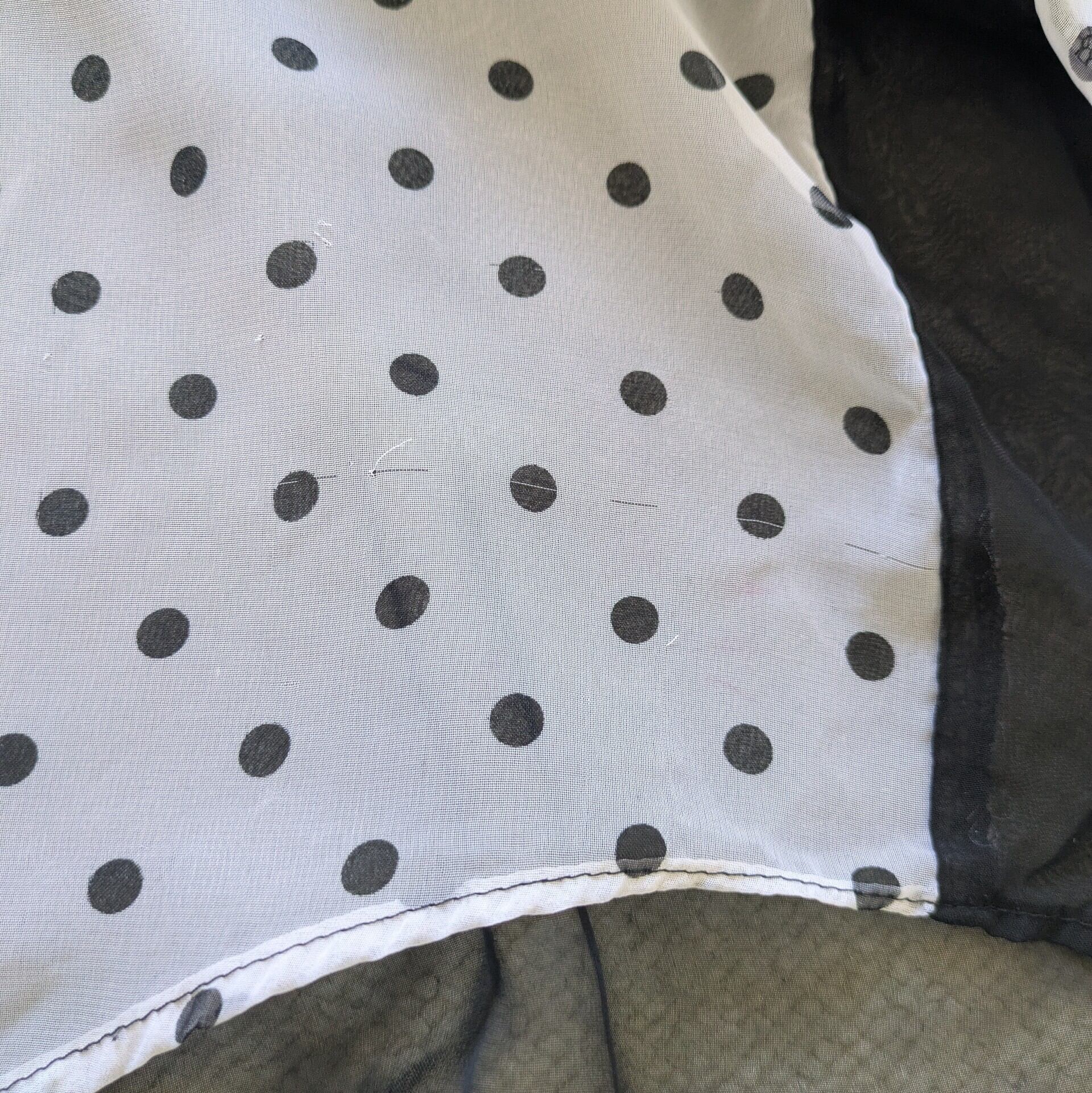 袖に小さな汚れ、黒い方の布地全体的にムラ、前裾の左右の長さに違いあり