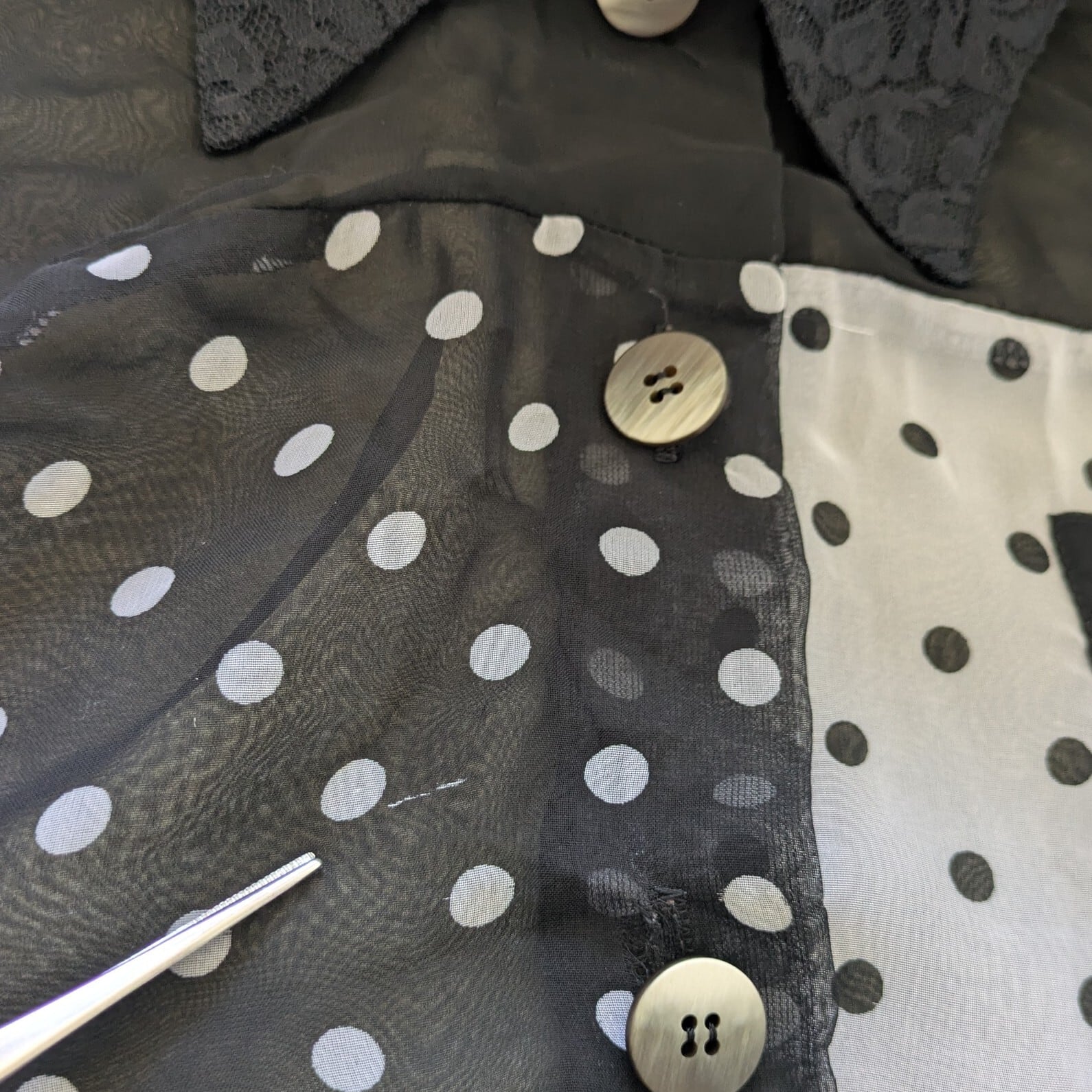 バイカラー ドットシアーシャツ used レディース古着