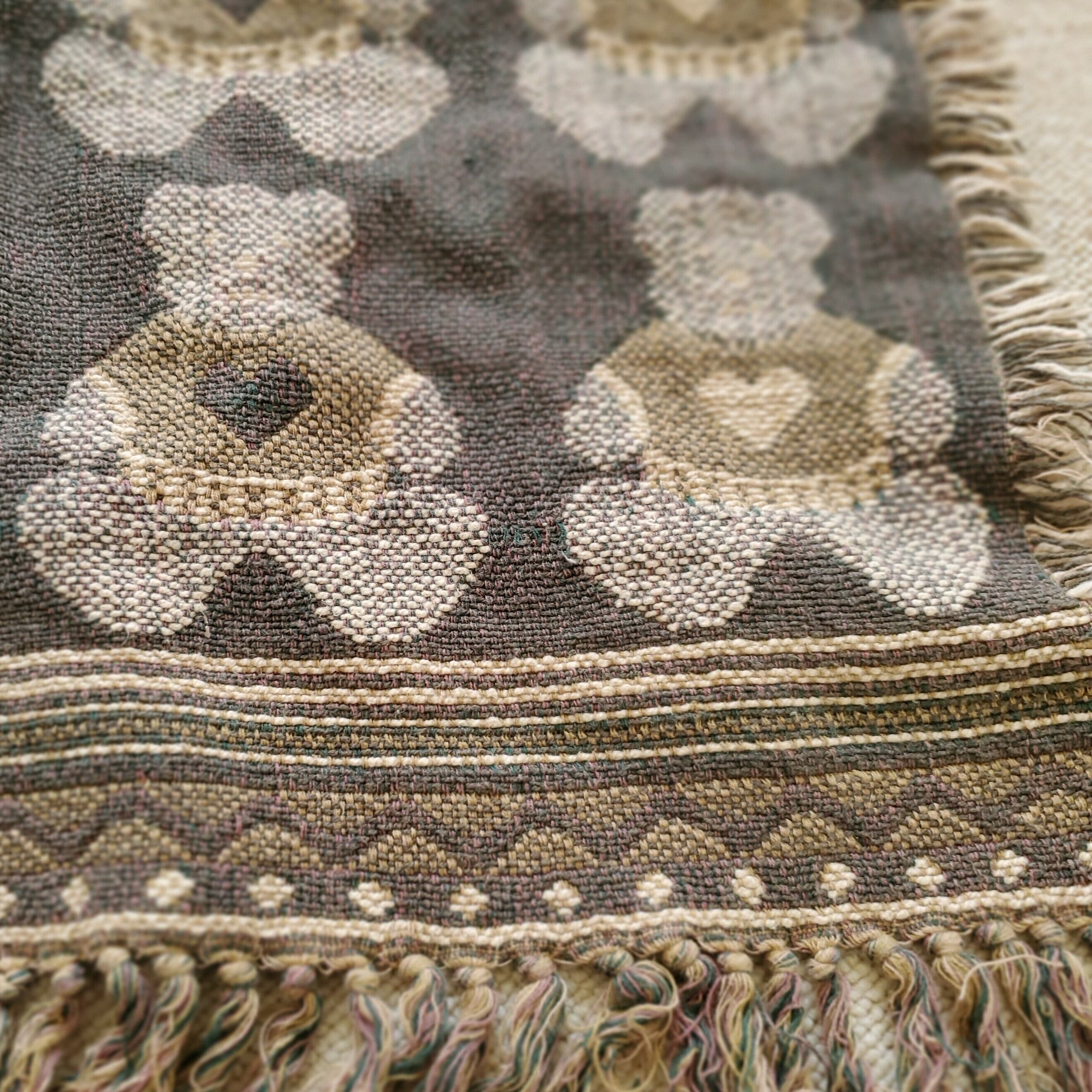 【ビンテージラグ】マルチカバー テディベア柄 サイズ約106cm×126cm