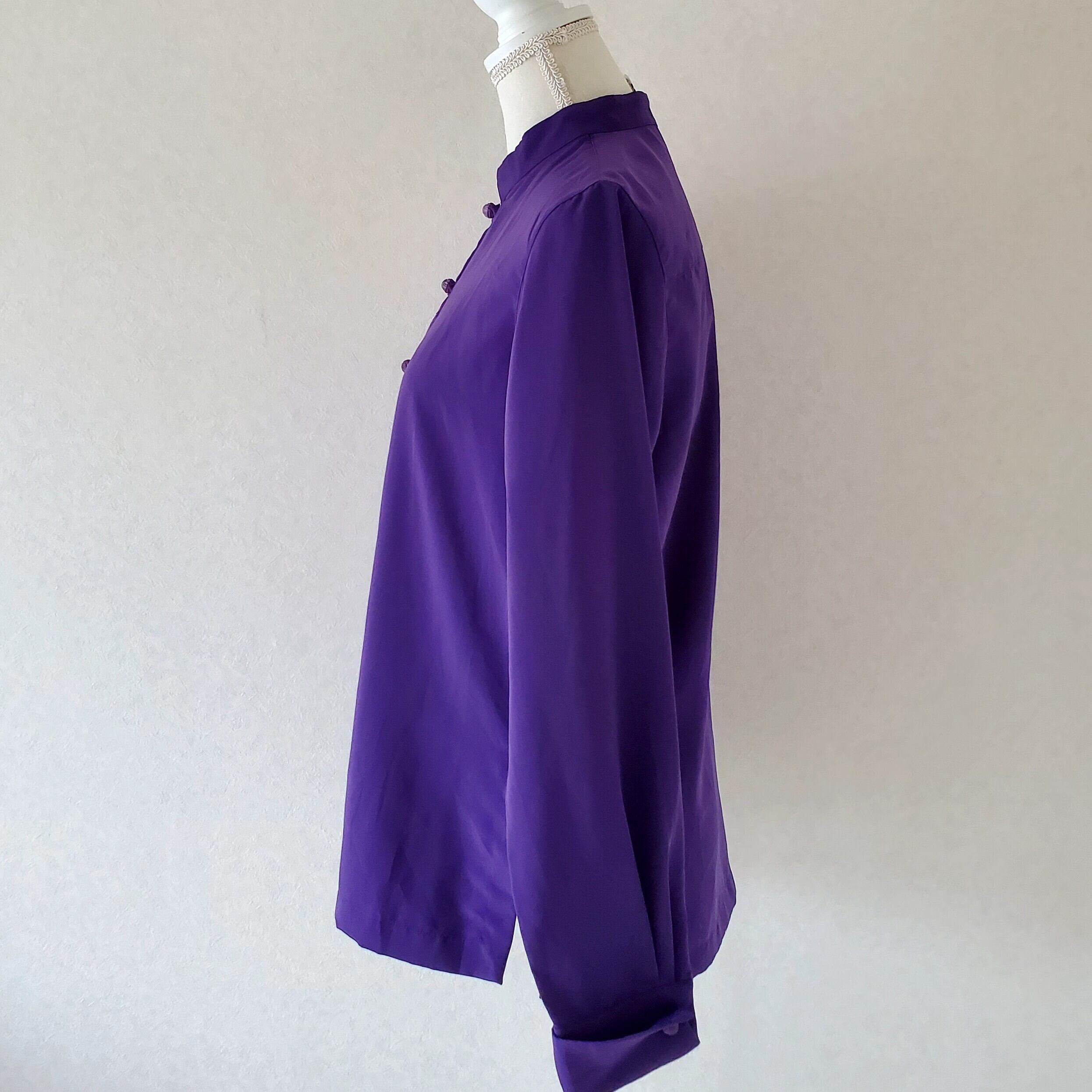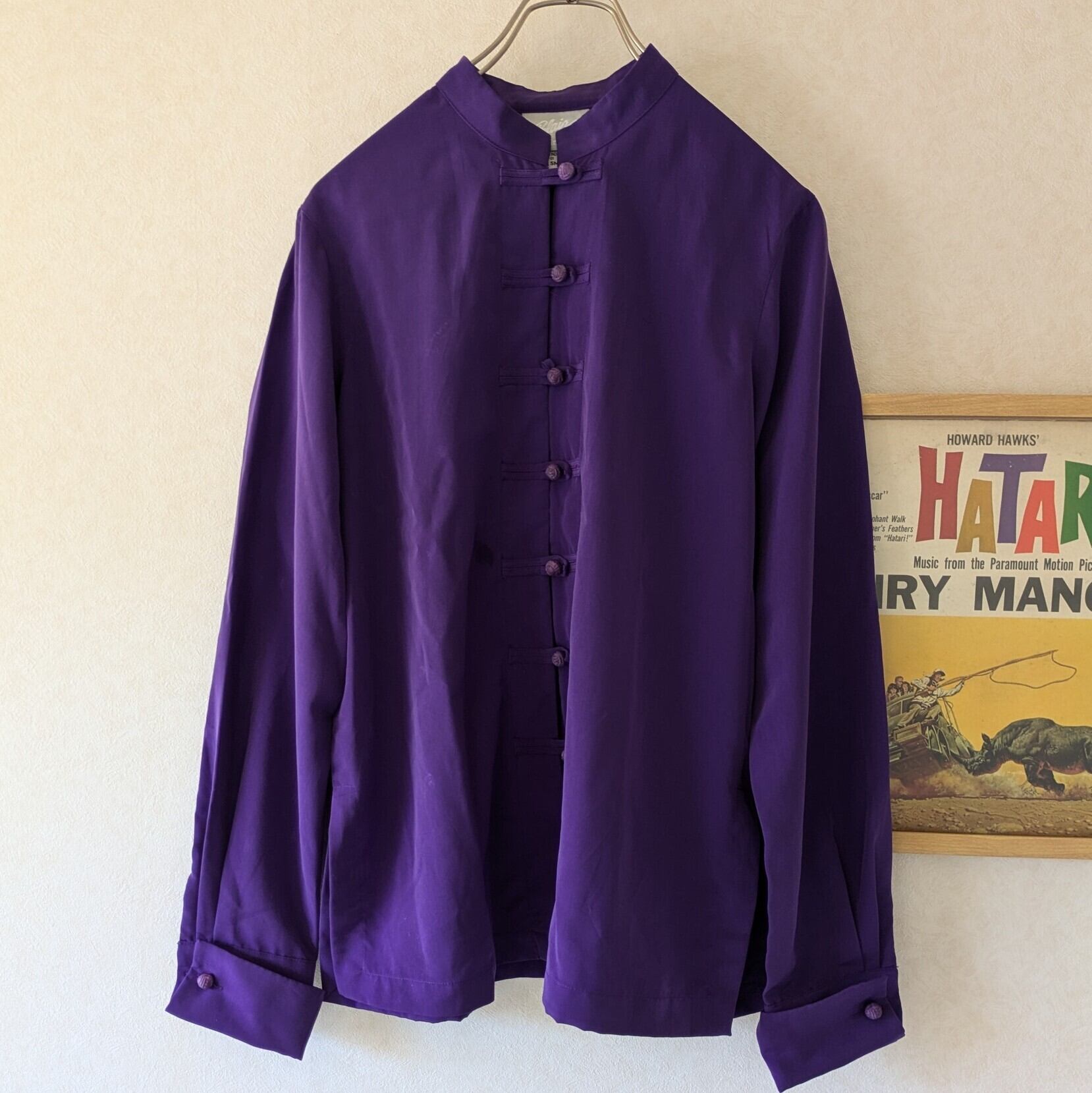 【ビンテージ】サテン チャイナシャツ 紫 サイズM〜L程度 レディース古着