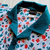 形はポロシャツのようですが素材はシワ加工の入ったサラッとしたポリエステル。