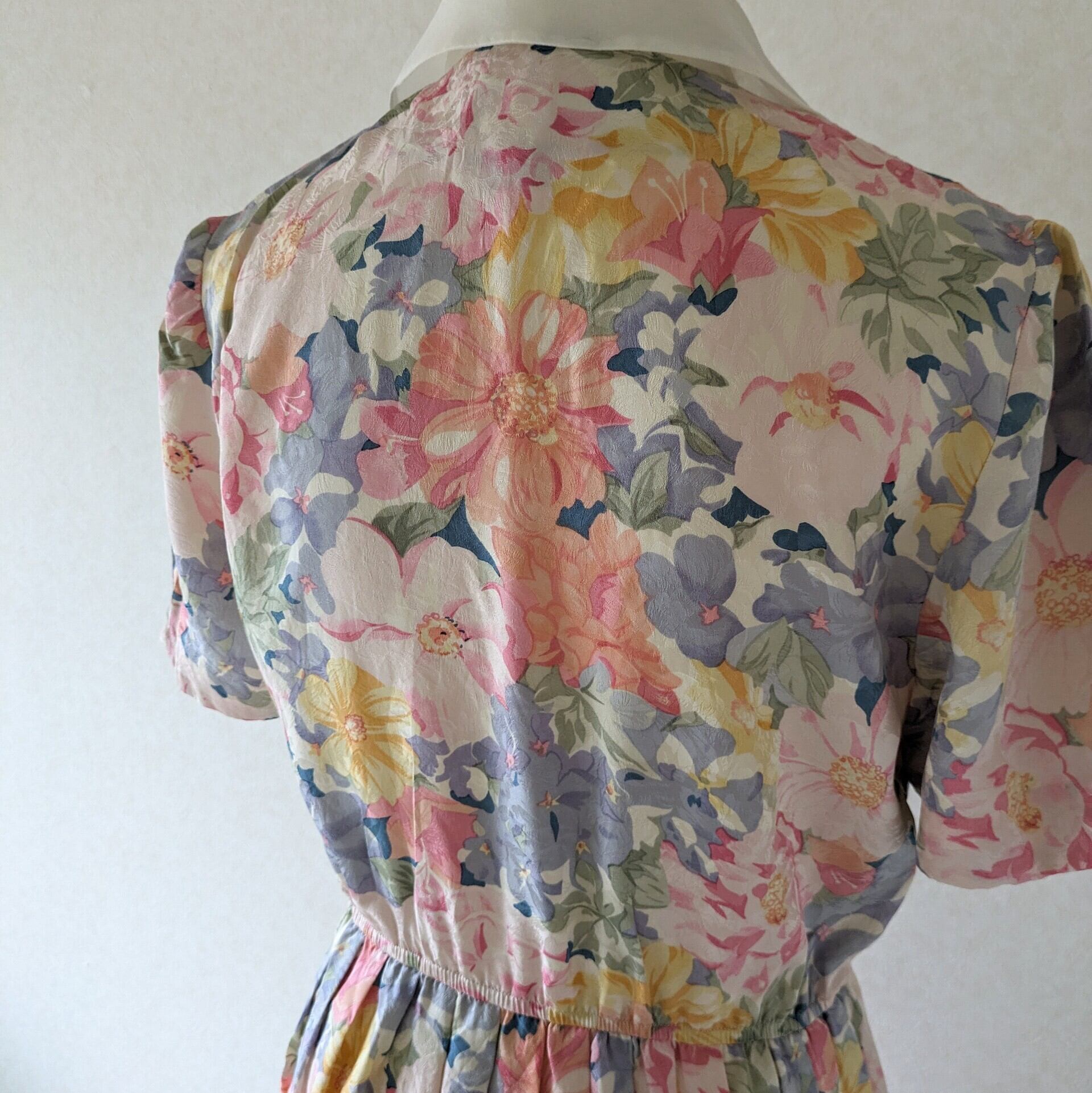 【Talbot PETITES】タルボット 昭和レトロ 花柄 シルクワンピース ミドル丈 サイズM程度 used レディース古着