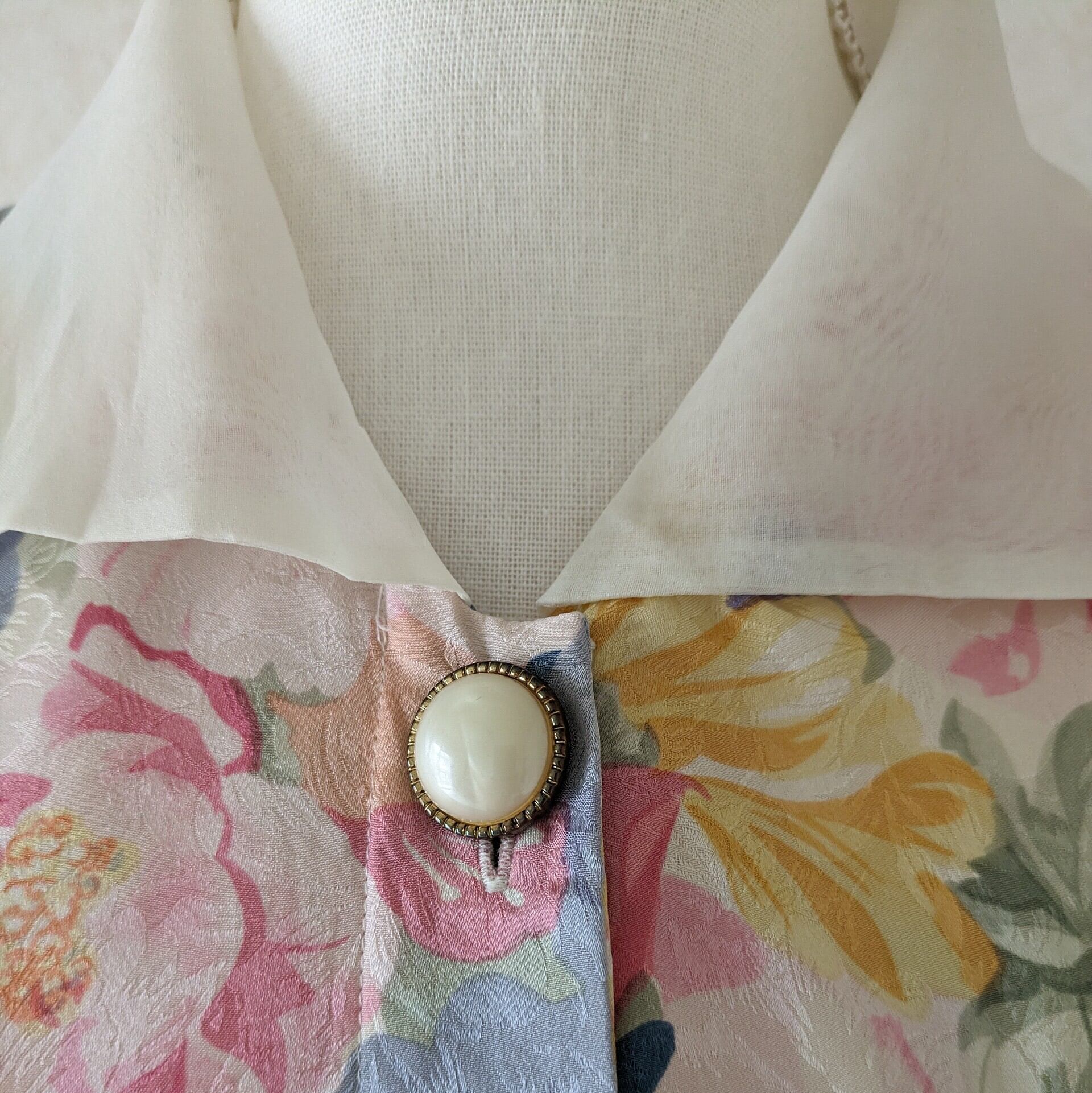 ピンクの花柄とオーガンジーの襟がとてもレトロな雰囲気。
