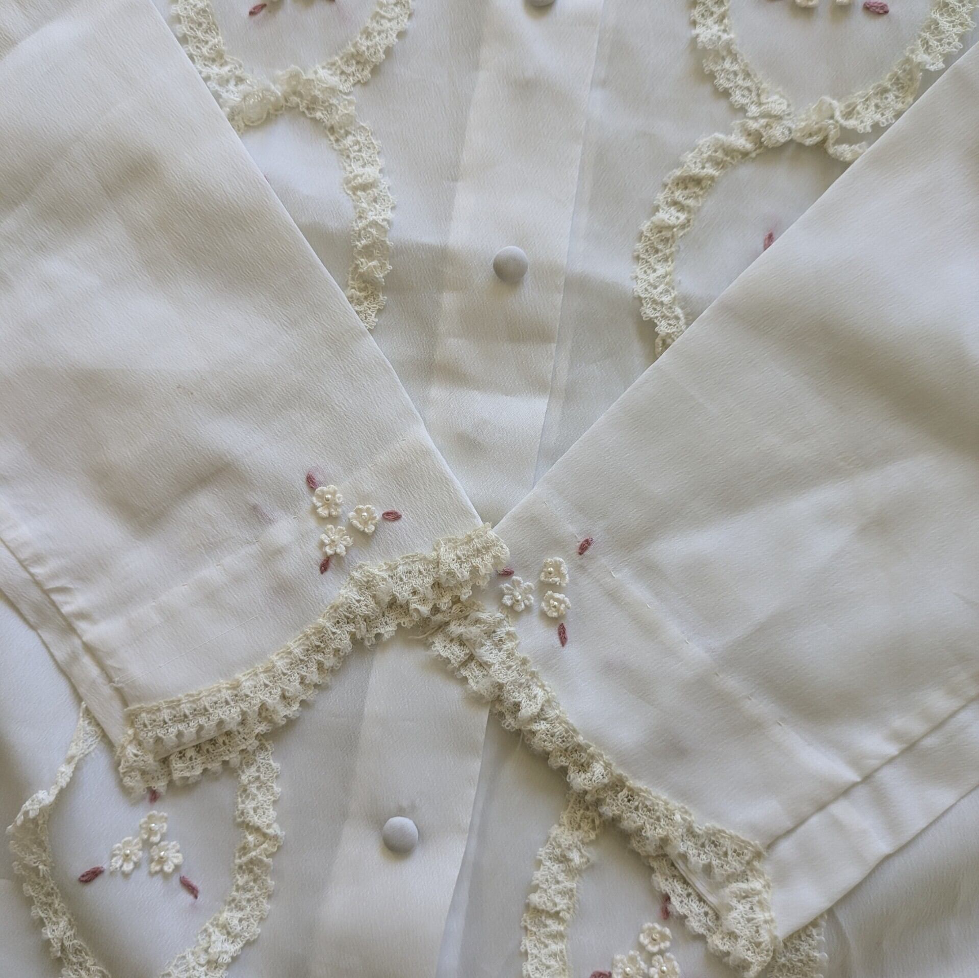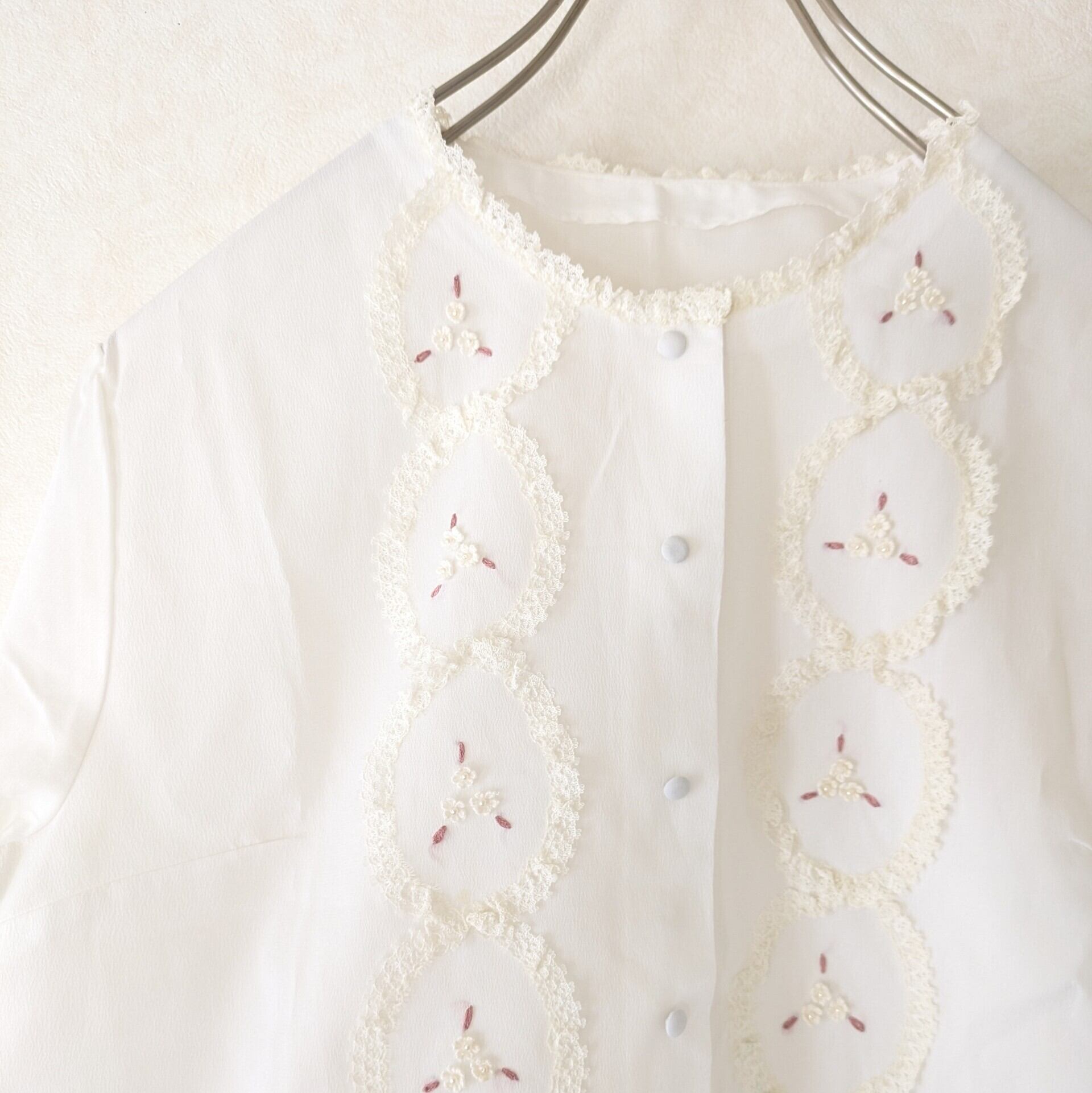 【昭和レトロ】白レース ショート丈ブラウス サイズM程度 used レディース古着