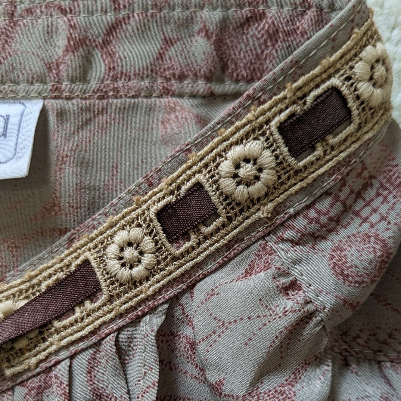 【昭和レトロ】ブラウン リボン付き 長袖ブラウス サイズ9 used レディース古着