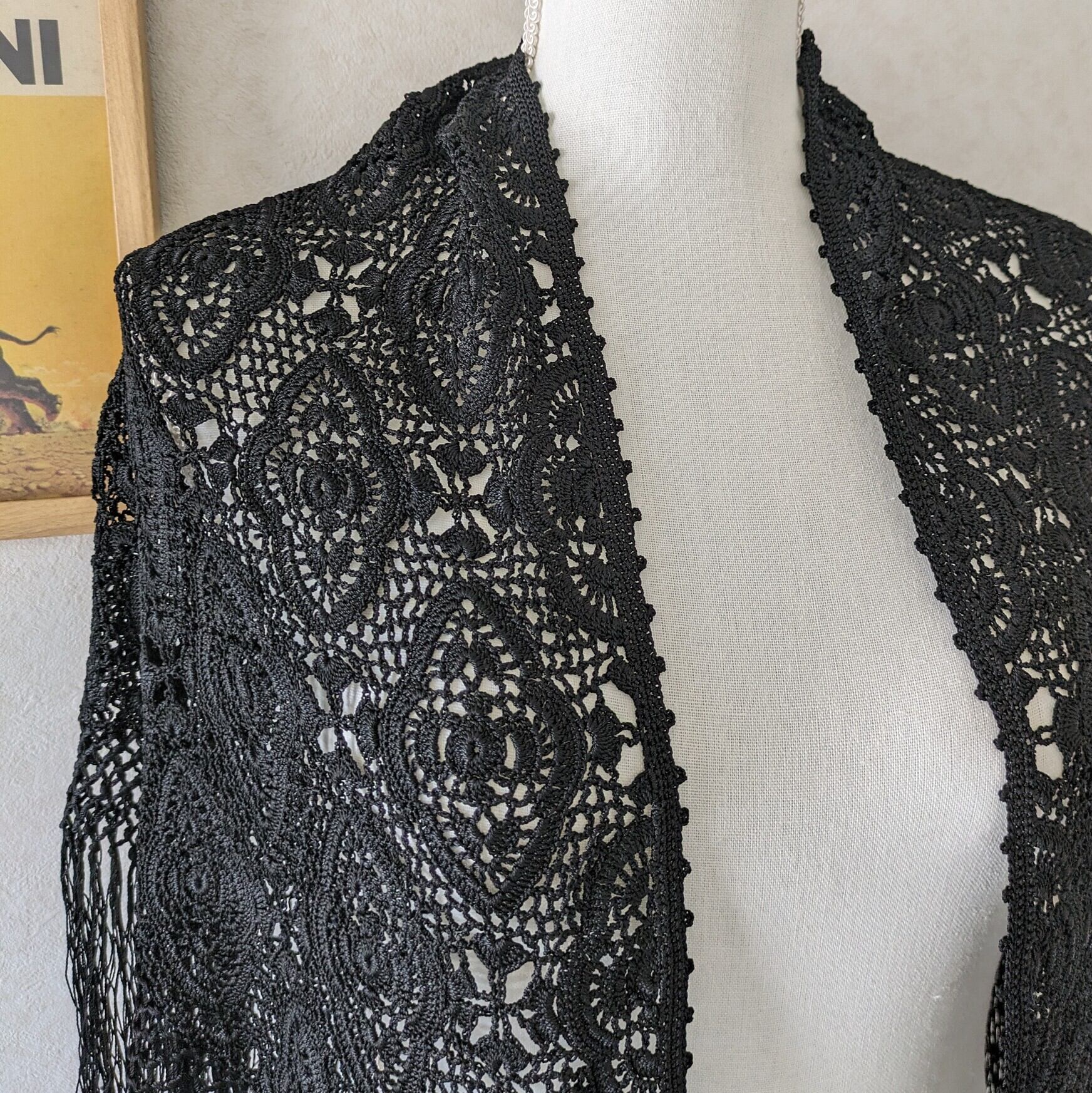【昭和レトロ】レース三角ストール 黒 used レディース古着