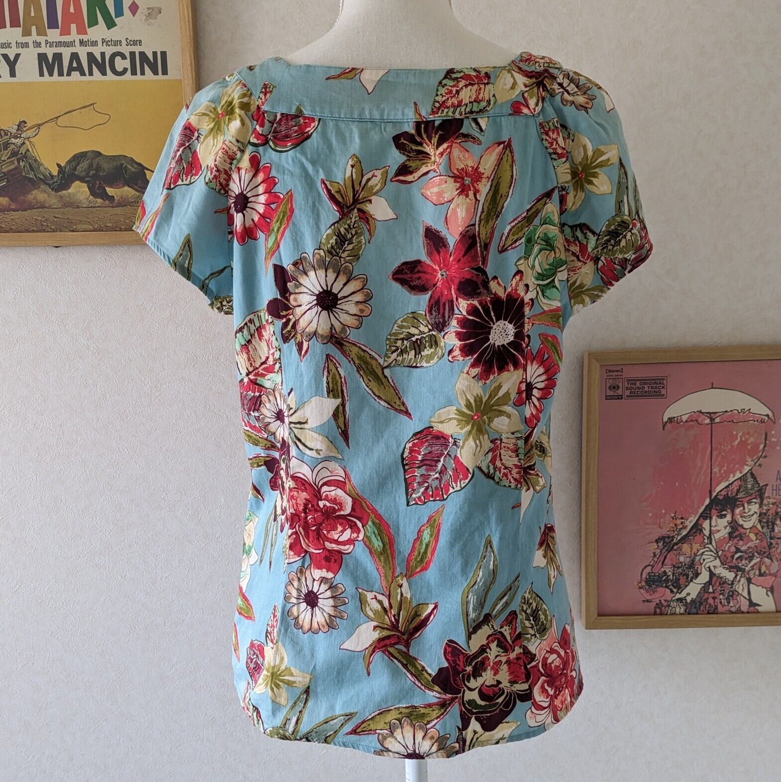 【インド綿】花柄ブラウス 水色 サイズL used レディース古着
