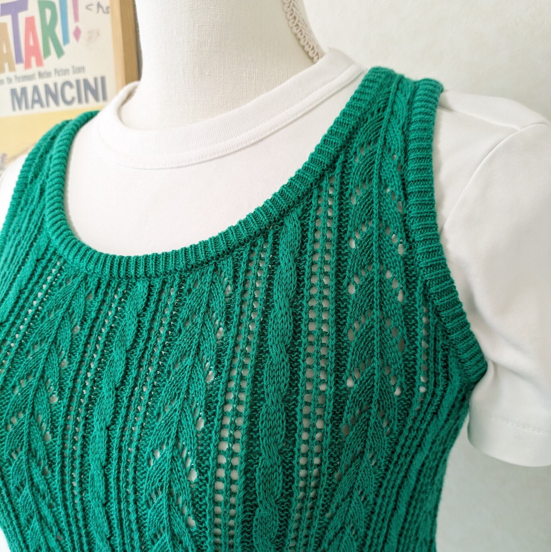 麻混ニットベスト キャミソール グリーン サイズS程度 used レディース古着