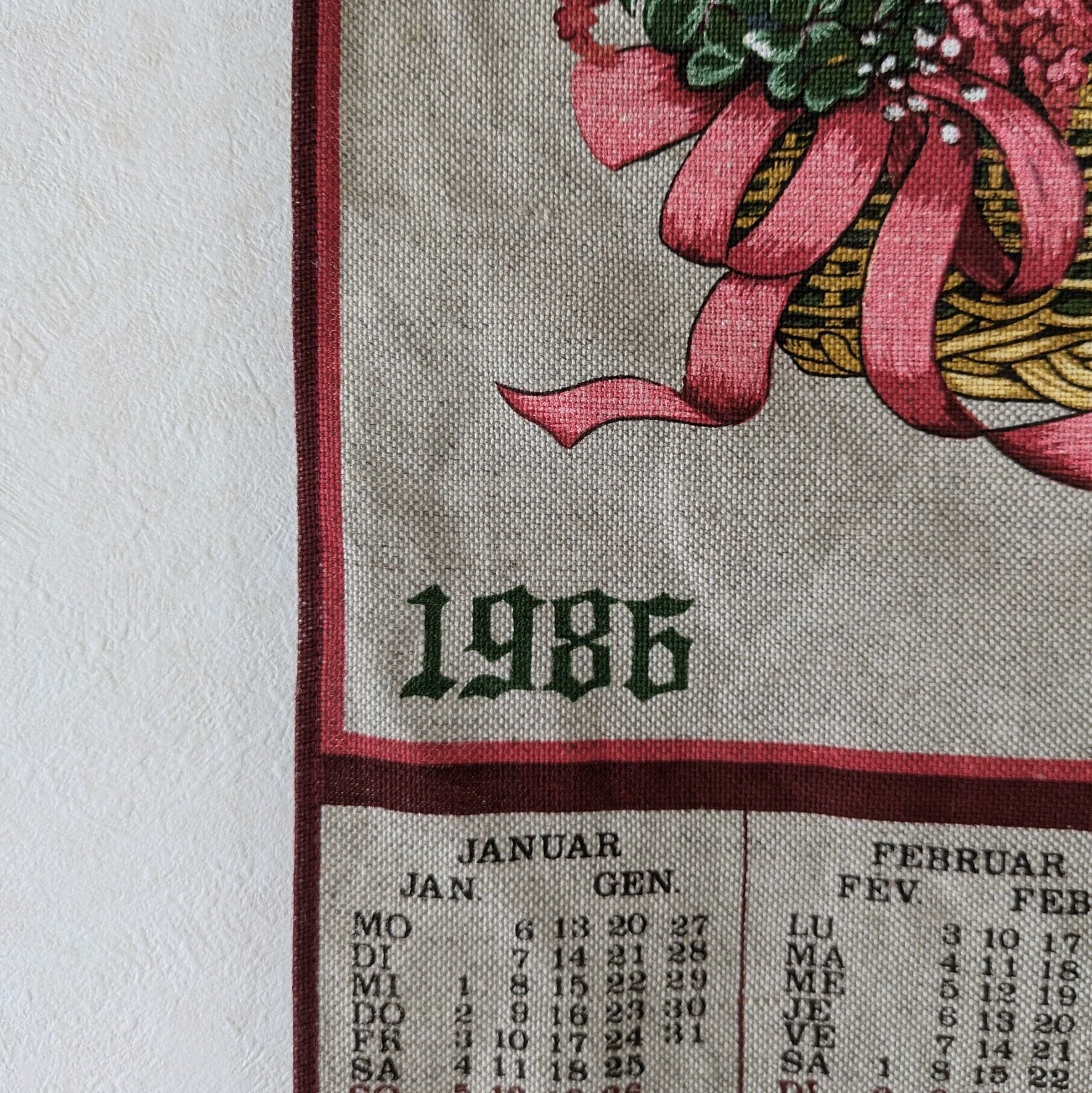 【1986年】ファブリックカレンダー タペストリー ウォールデコレーション 花籠