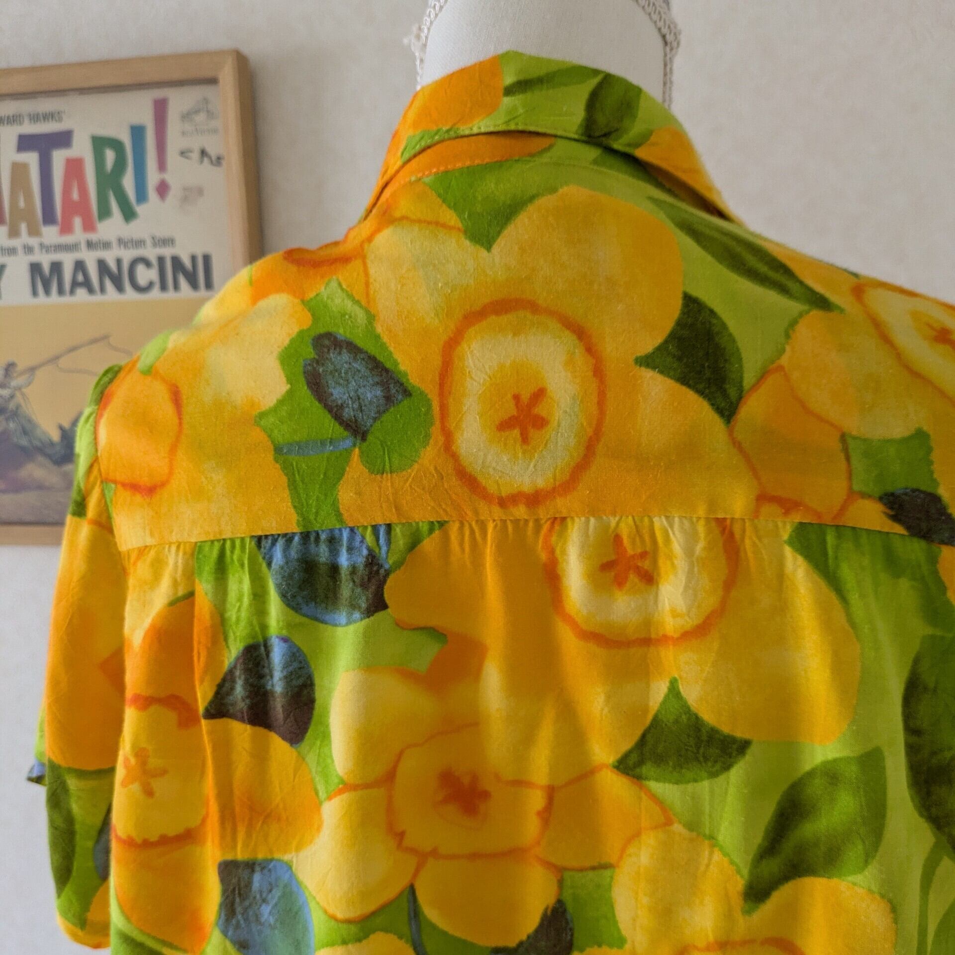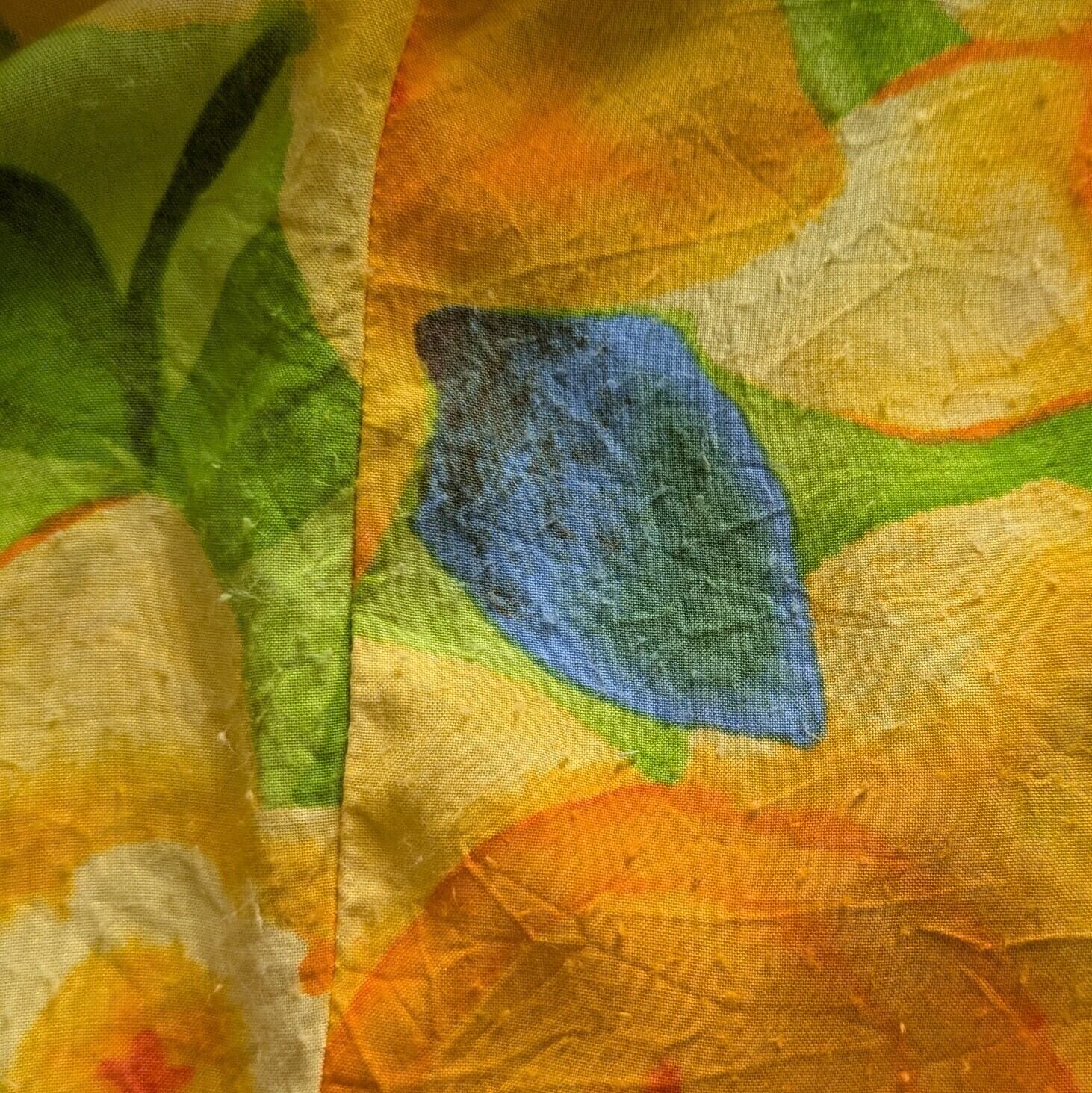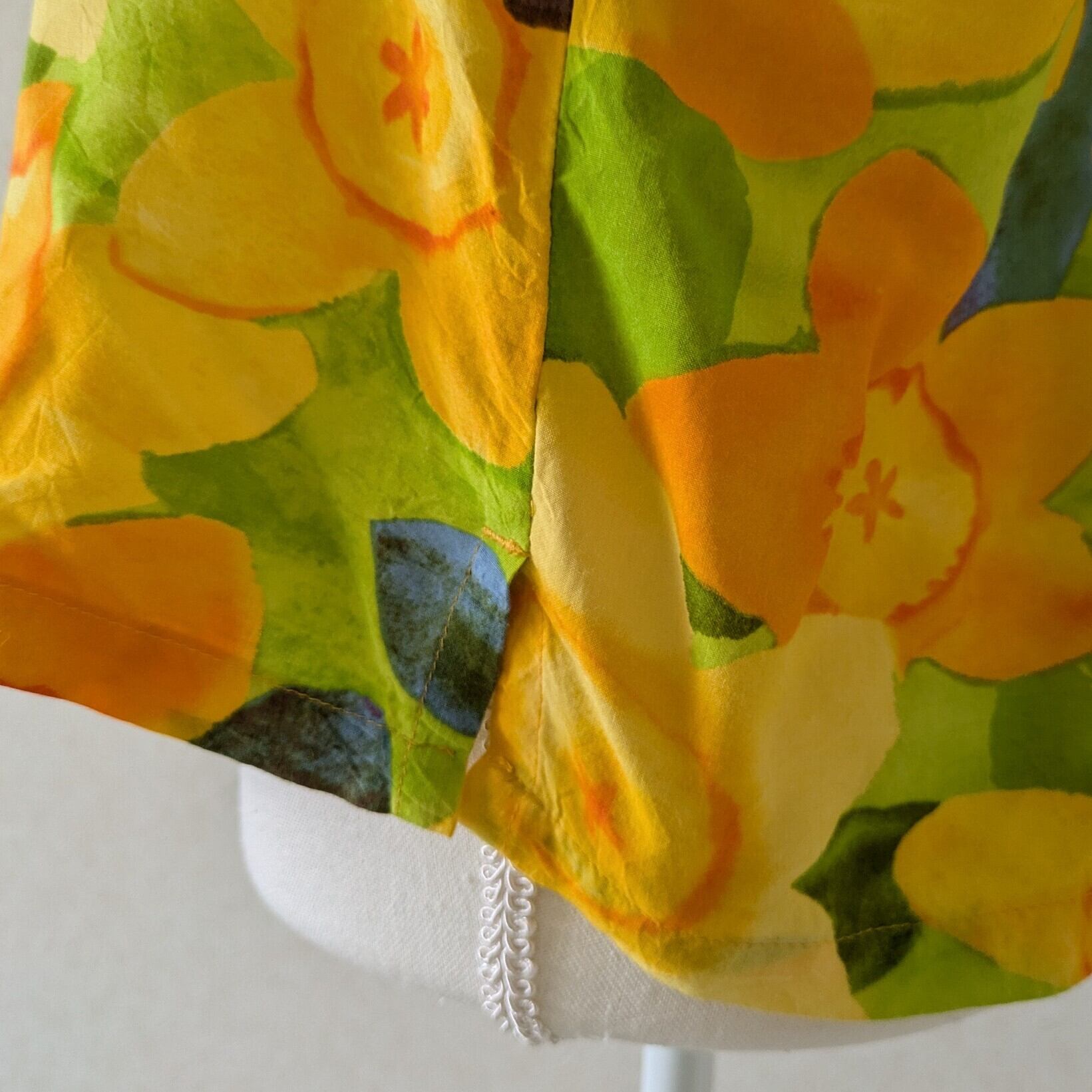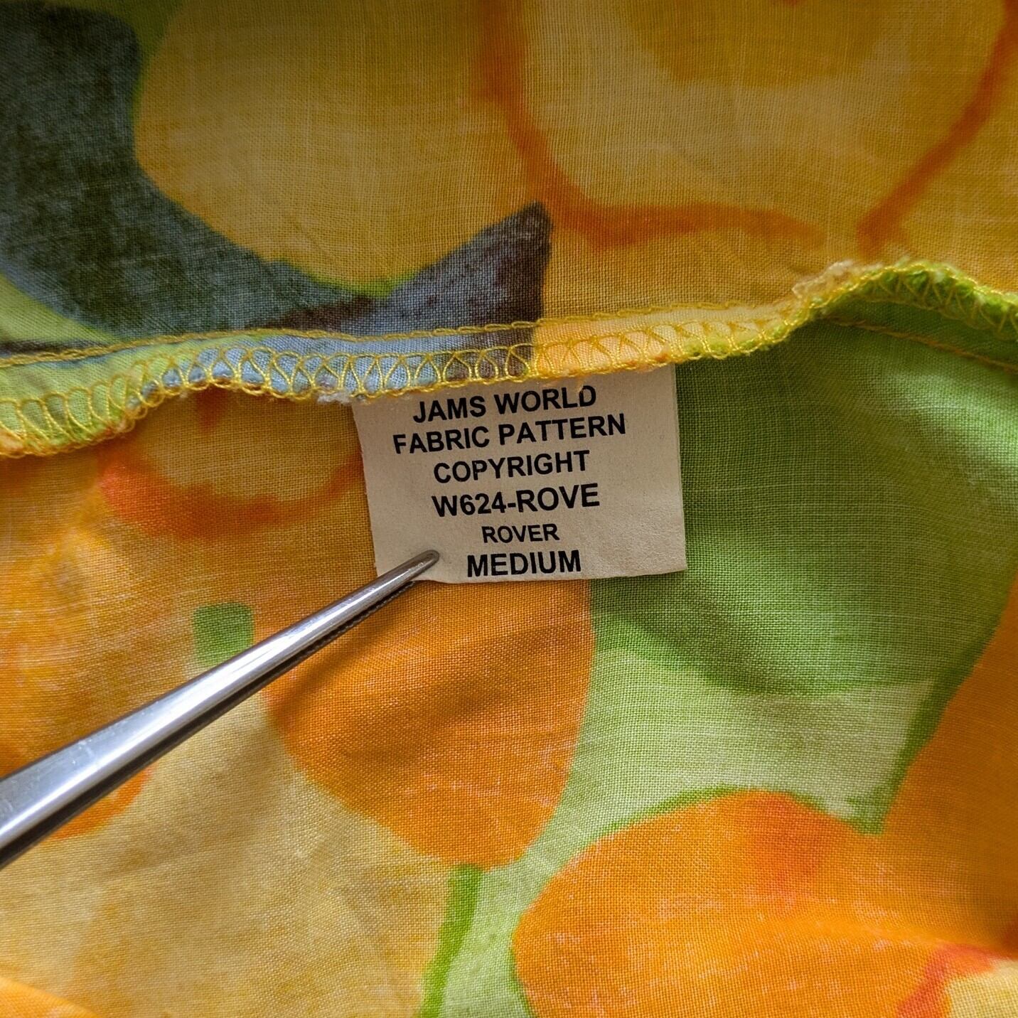 ジャムズワールドの特徴であるシワ加工に、元気いっぱいのイエローの花柄がとてもよく映えます。