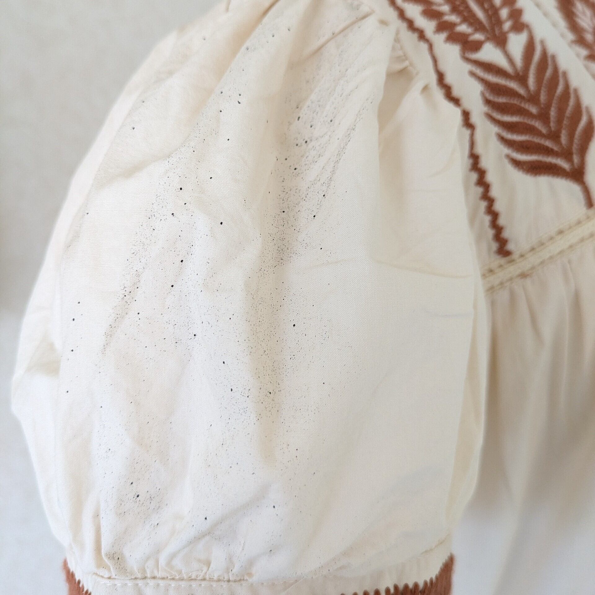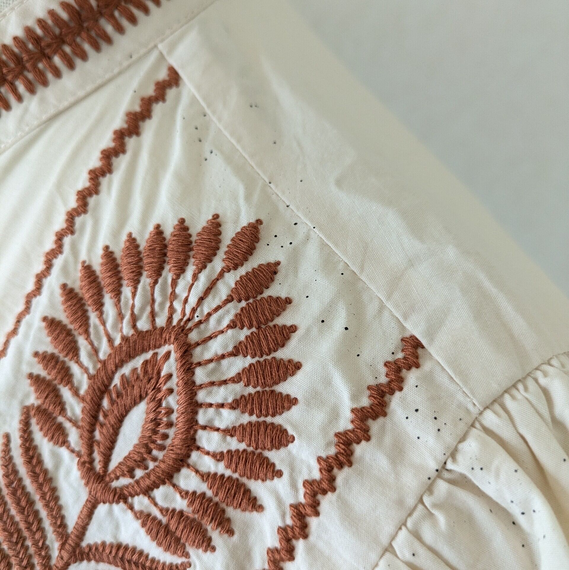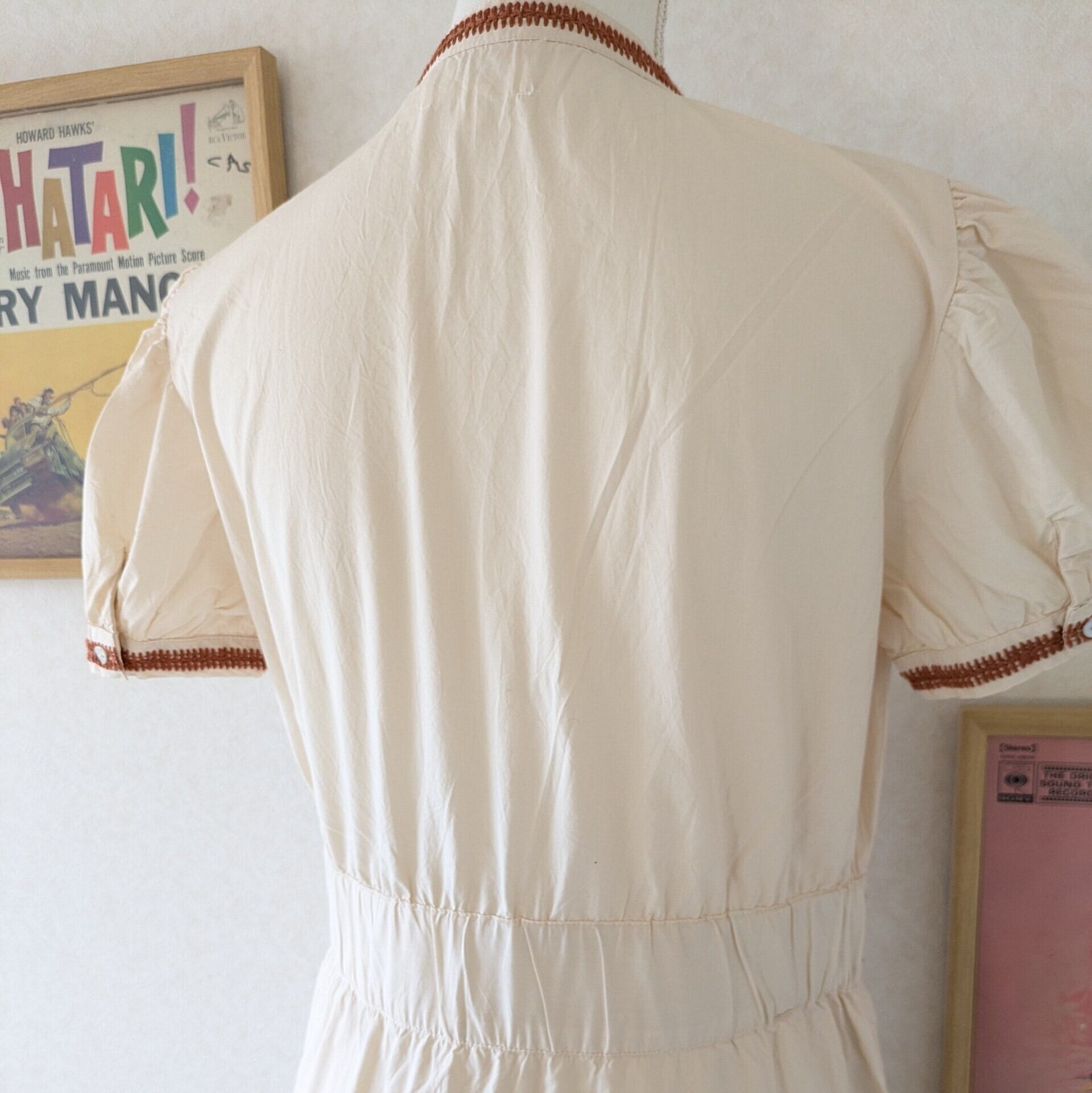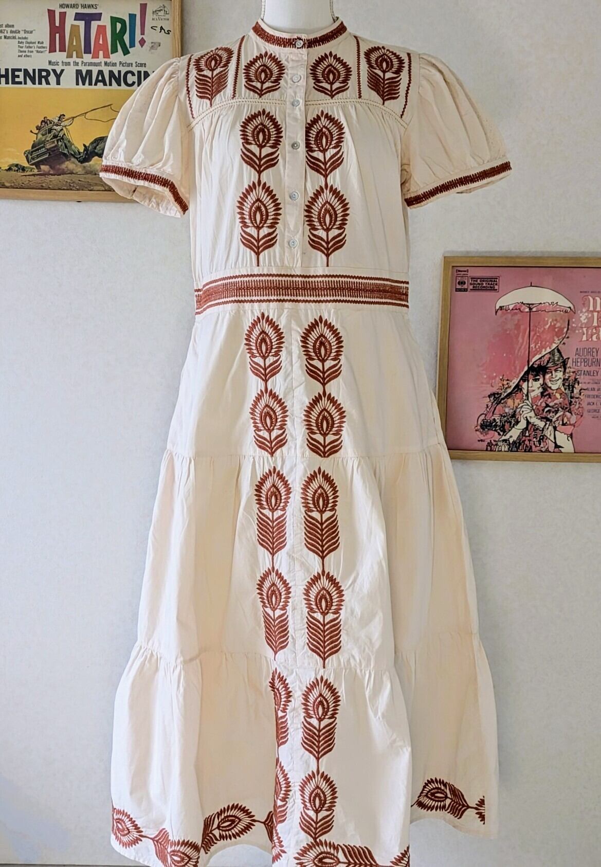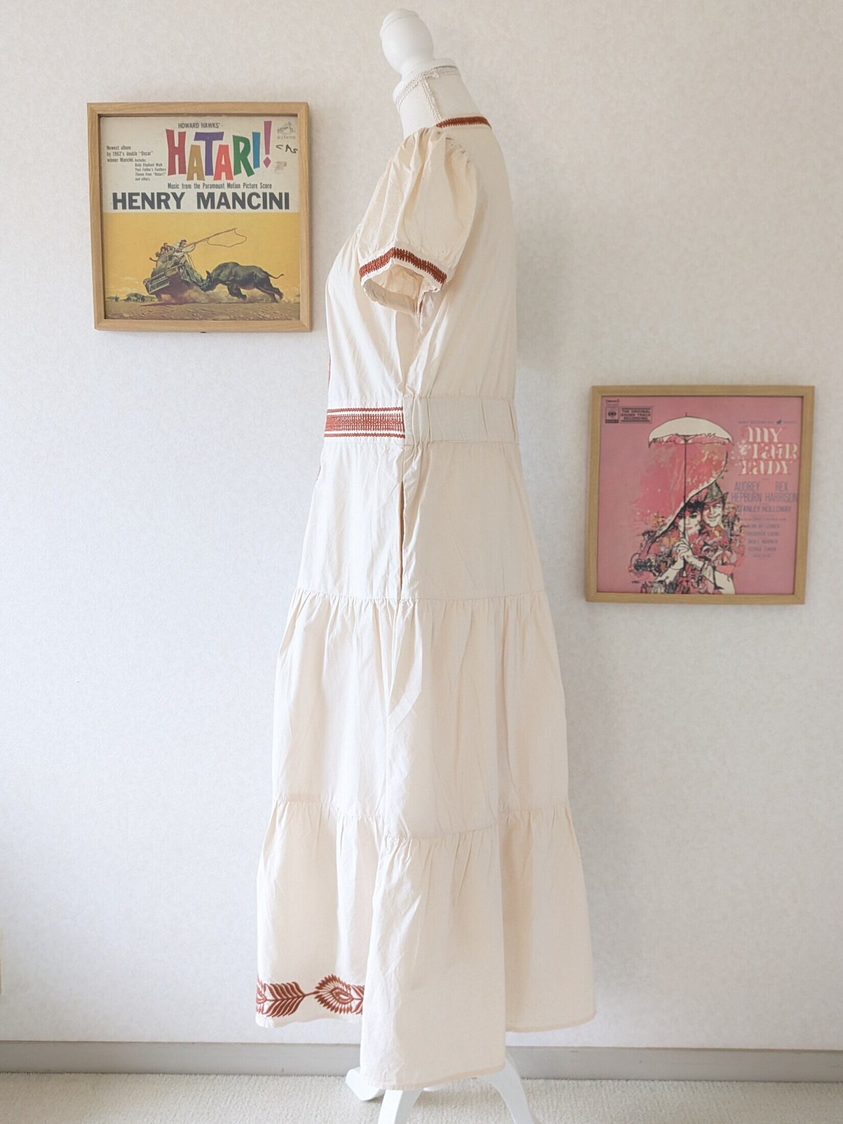 生成りのコットンにエスニックな刺繍の入ったワンピースです。