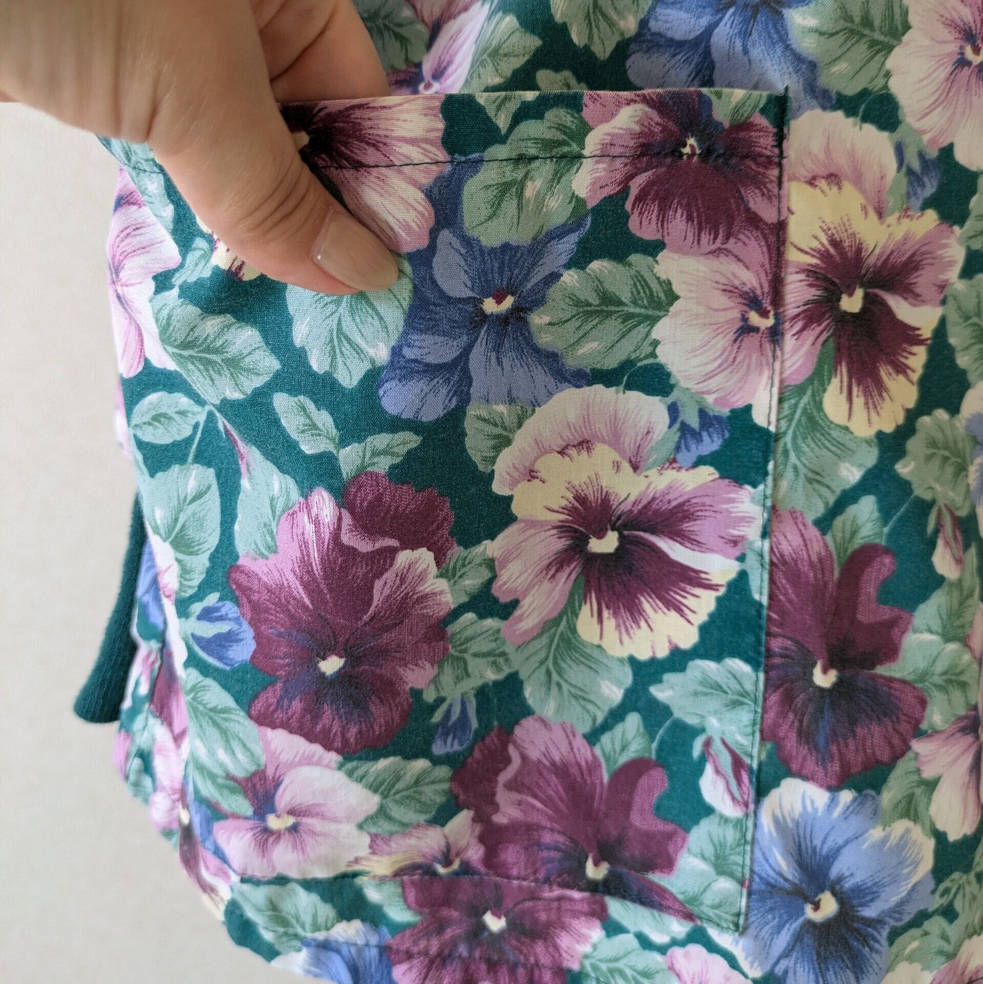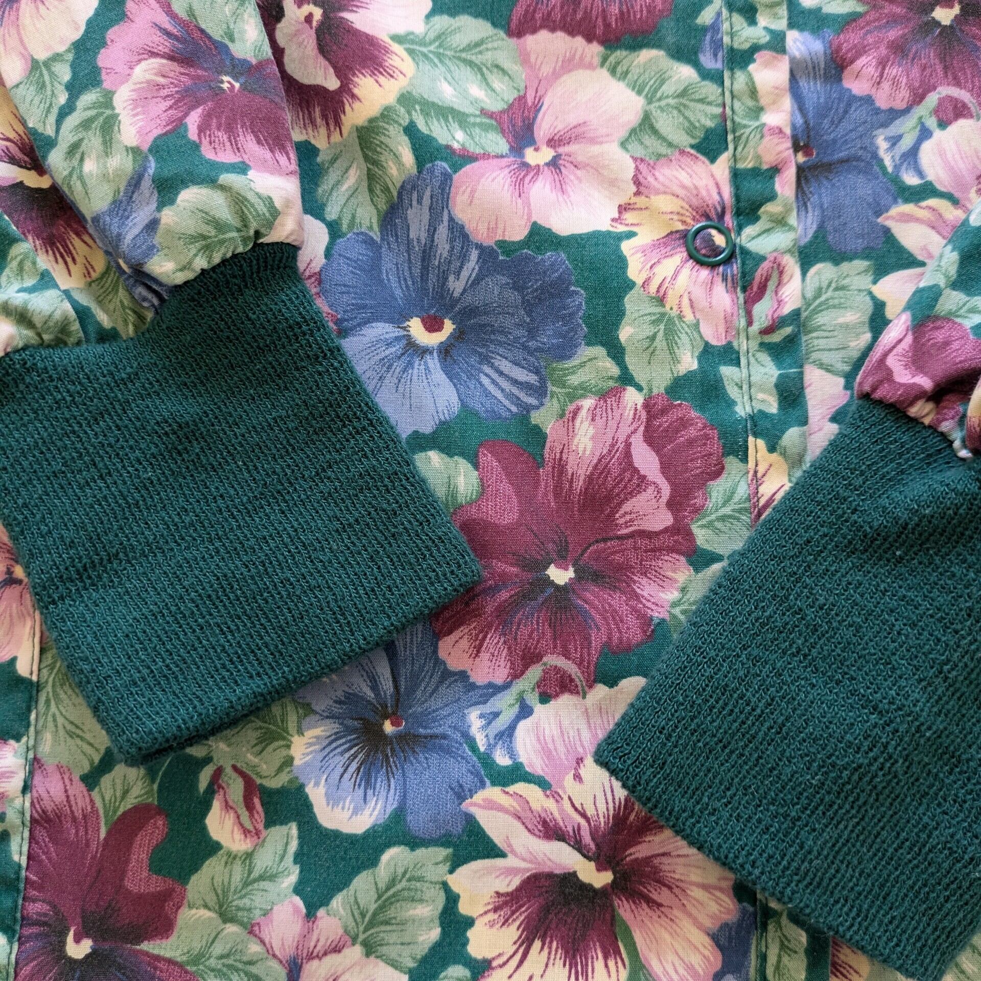 グリーンベースの花柄に、袖の長めのリブが効いています。