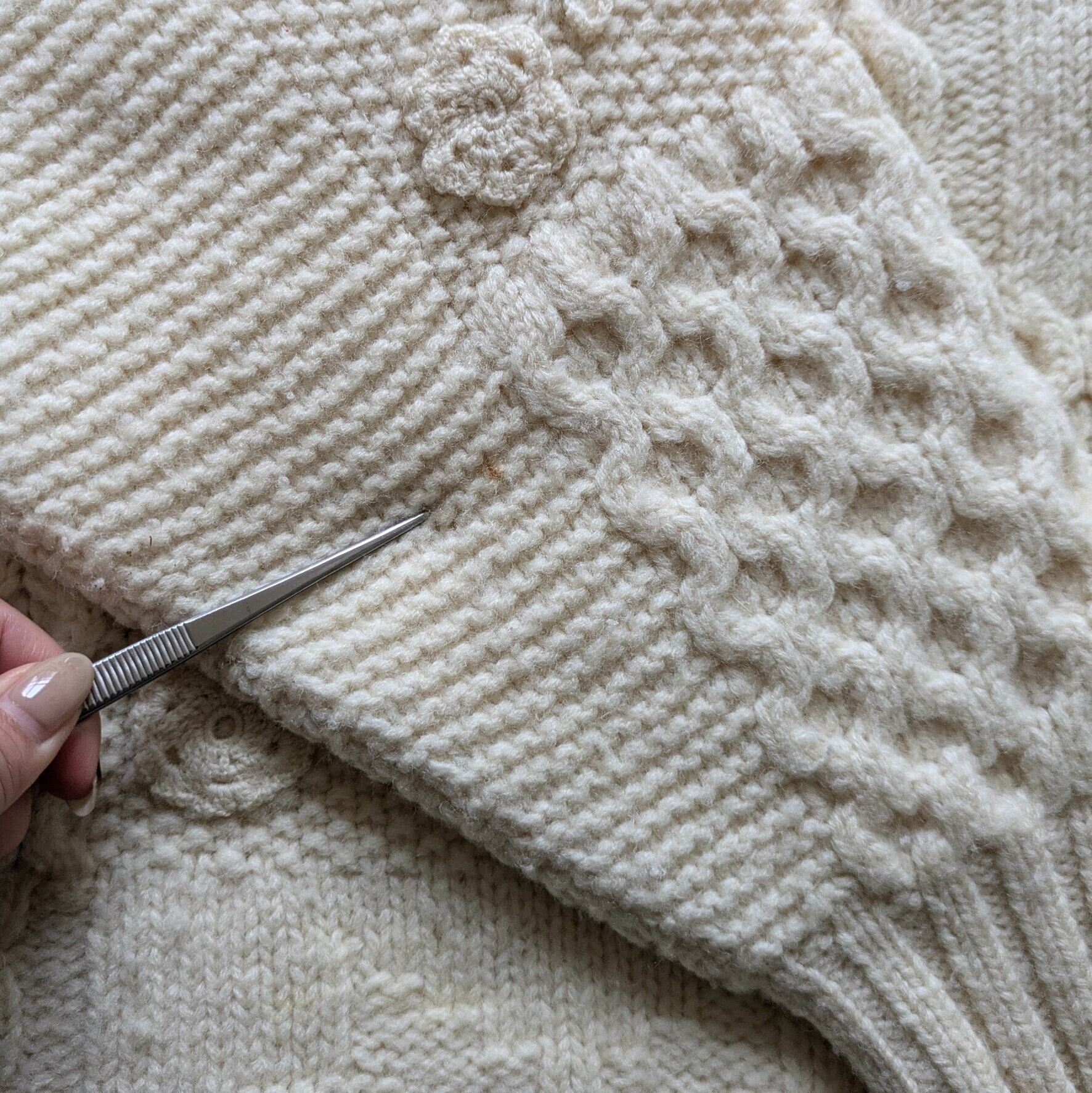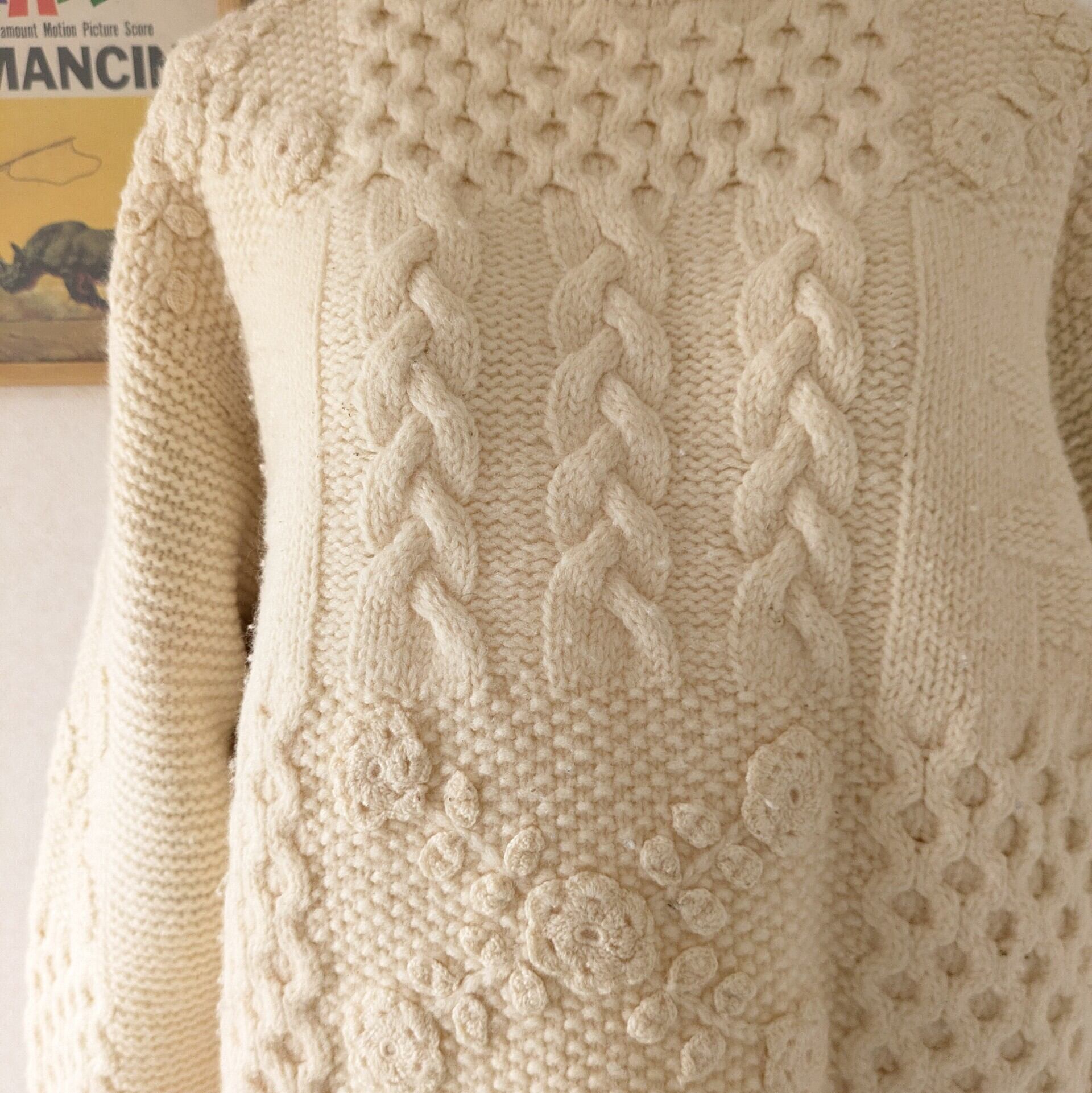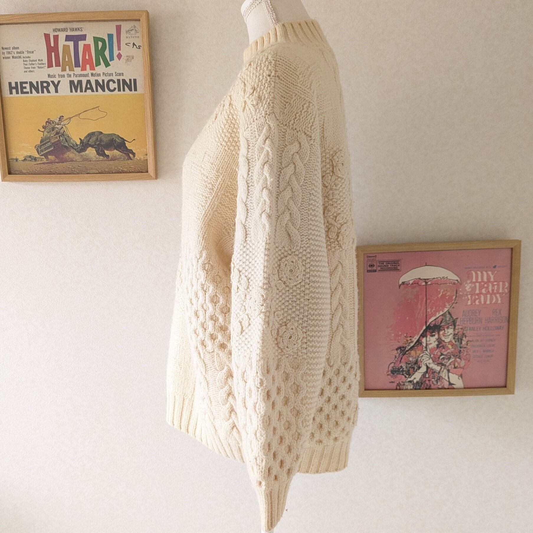 フラワーケーブルニット 生成り サイズS used レディース古着