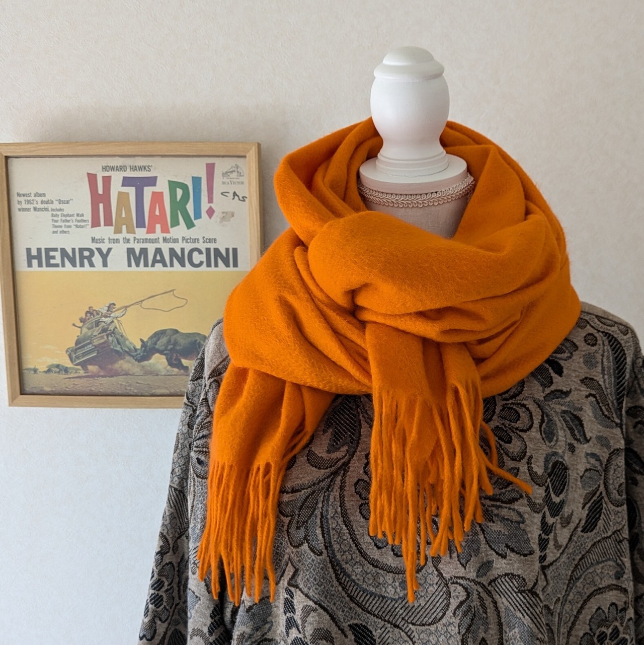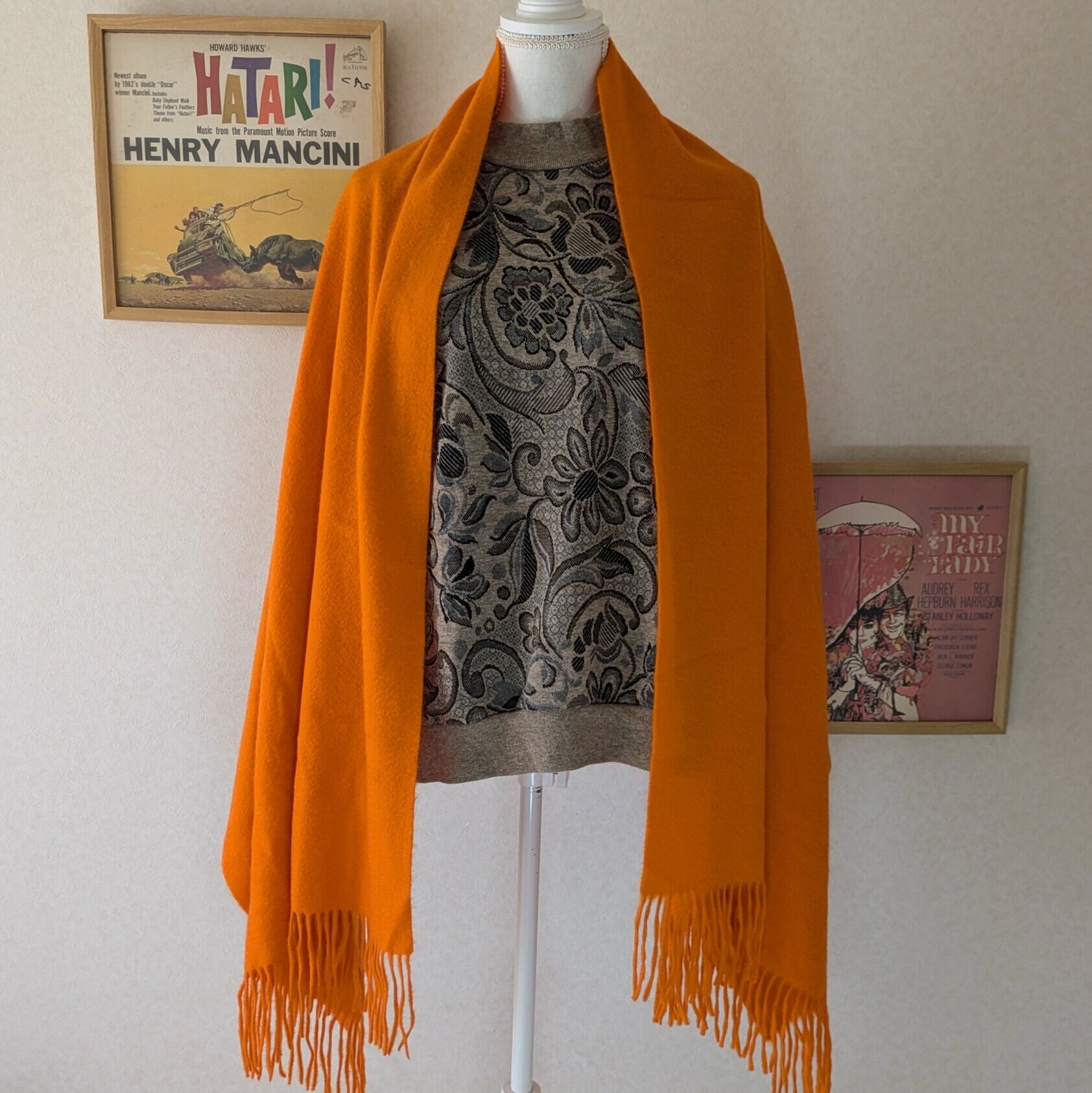 鮮やかなオレンジ色がキレイなカシミヤストールです。