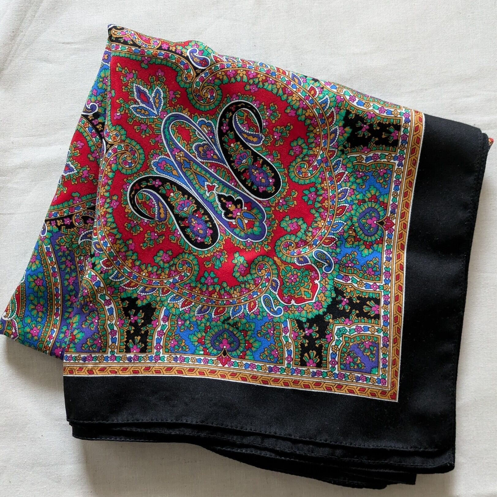 黒ベースに細かいペイズリーの柄がキレイなスカーフです。
