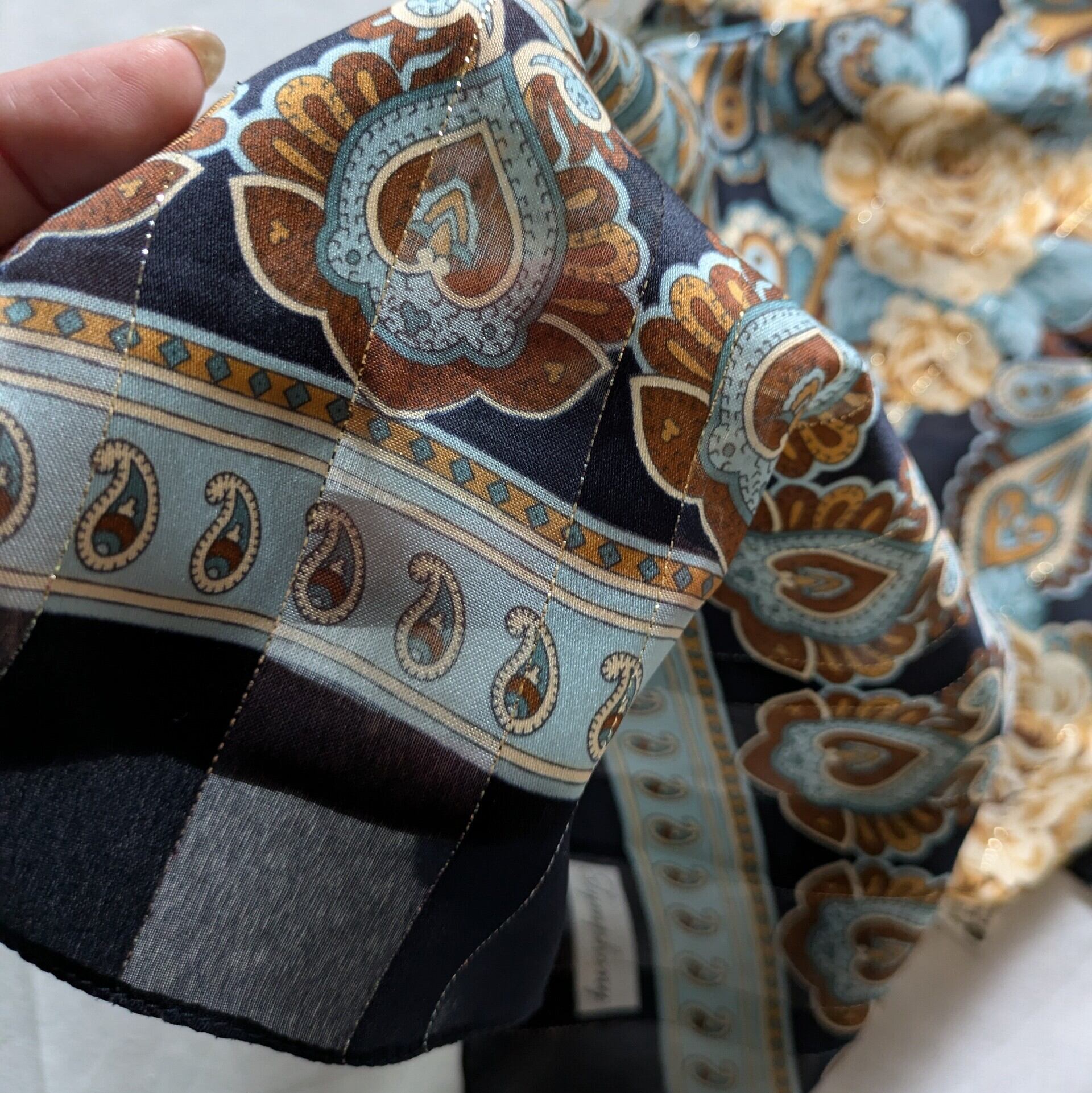 花柄とペイズリーのロングスカーフです。