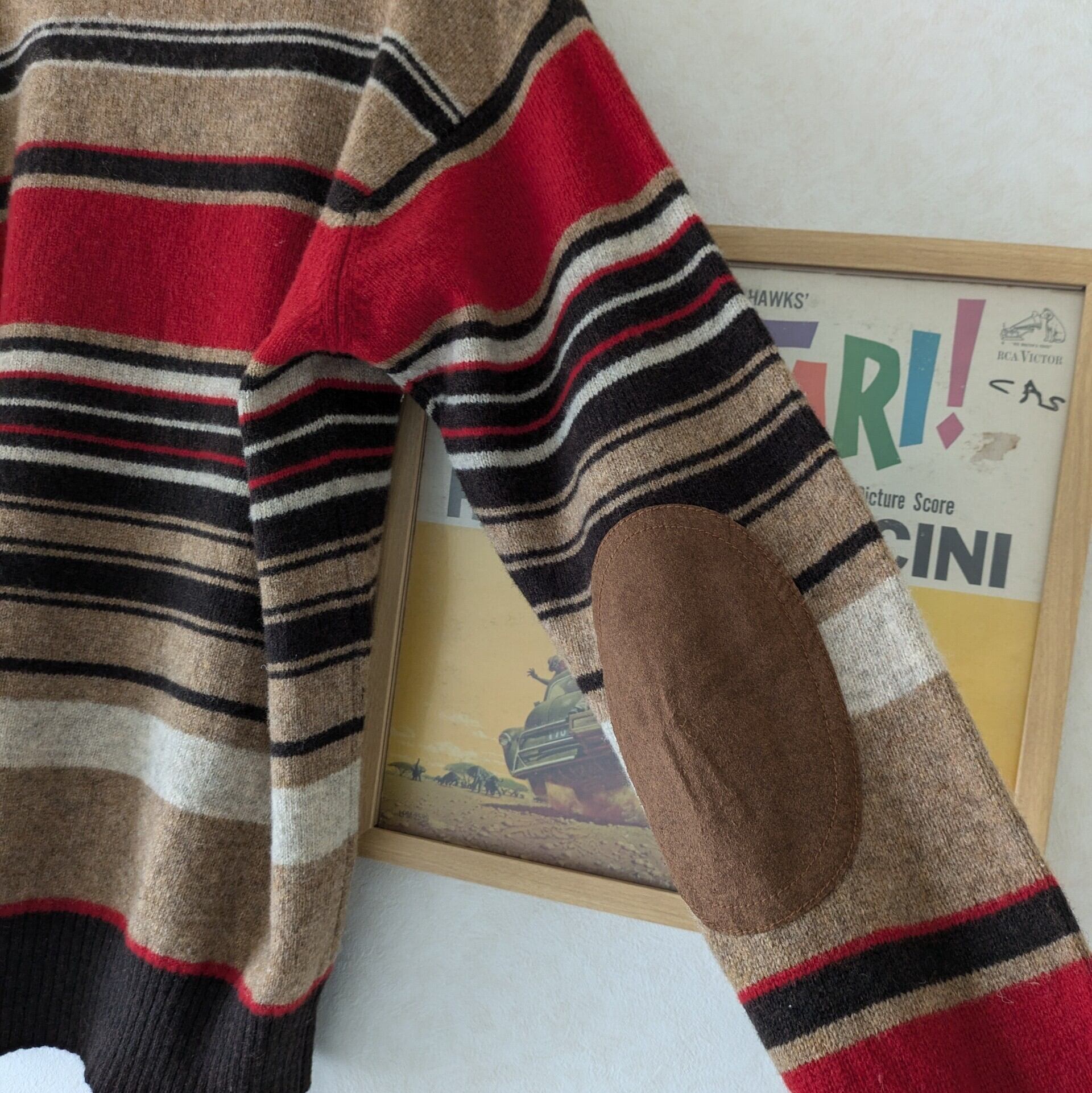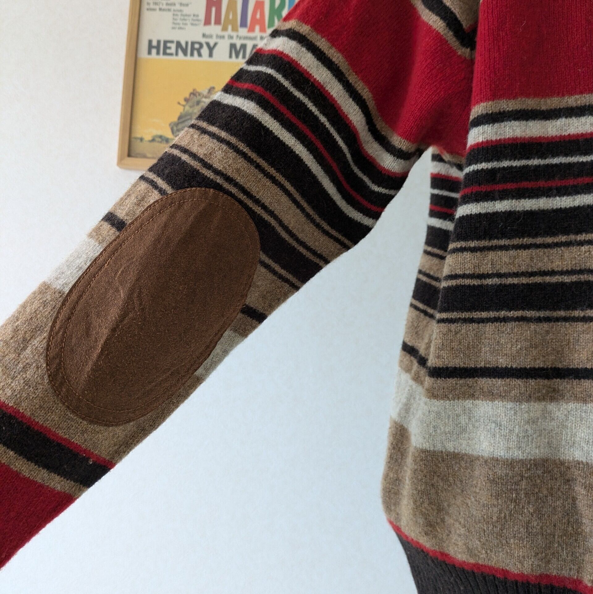ベージュに赤とブラウンのボーダーで、ヒジのパッチも可愛い♡