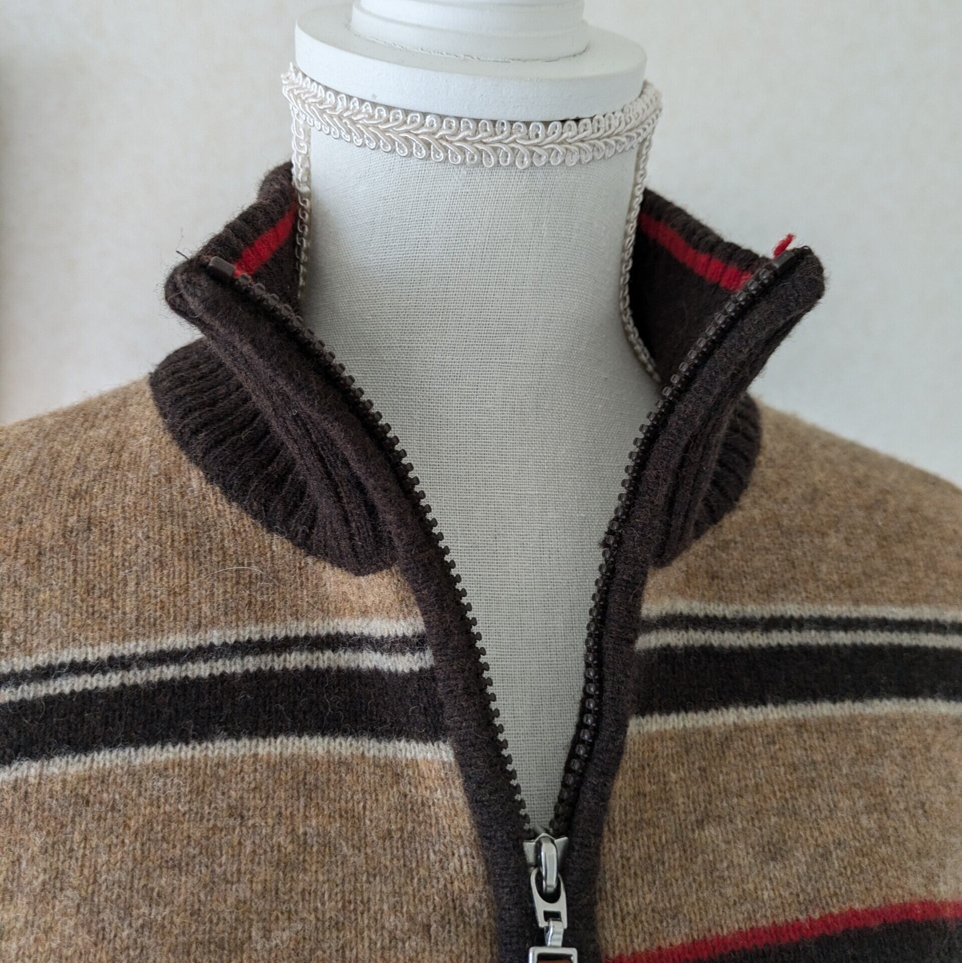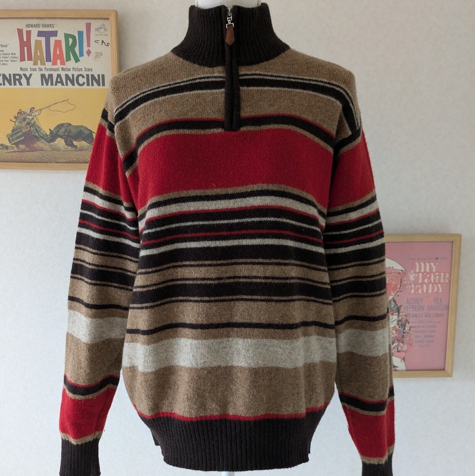 【pierre cardin】ハーフジップ ニット セーター ブラウン×赤ボーダー サイズ50 used レディース古着 メンズ古着