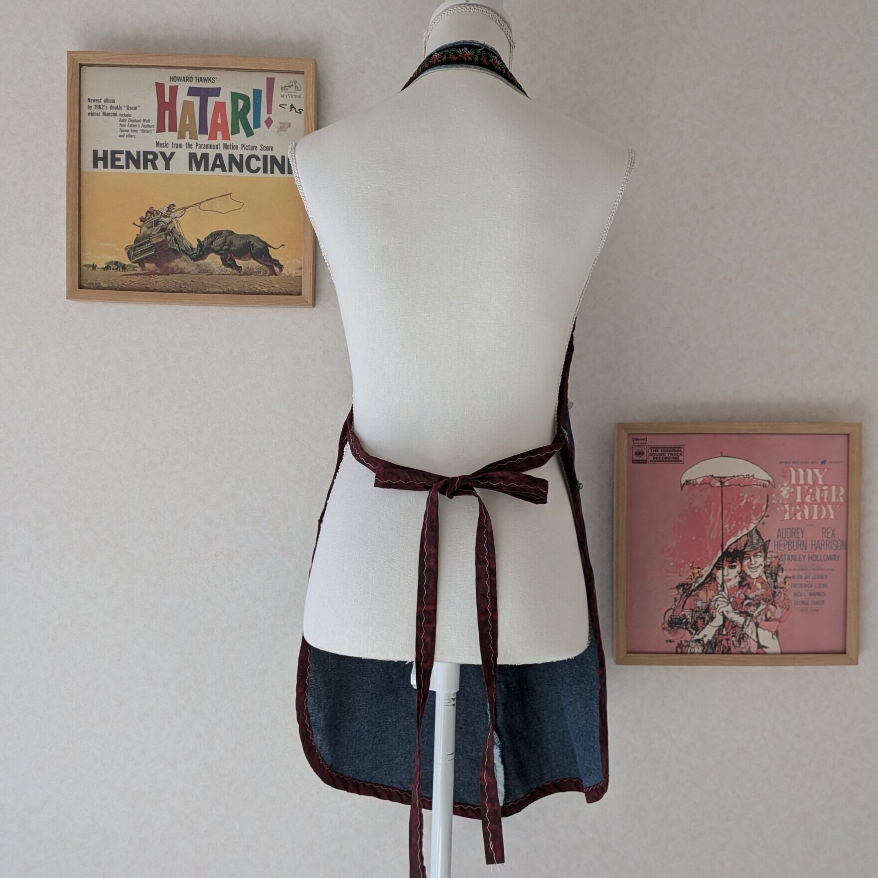 ビンテージの布が使われたハンドメイドのリメイクエプロンです。