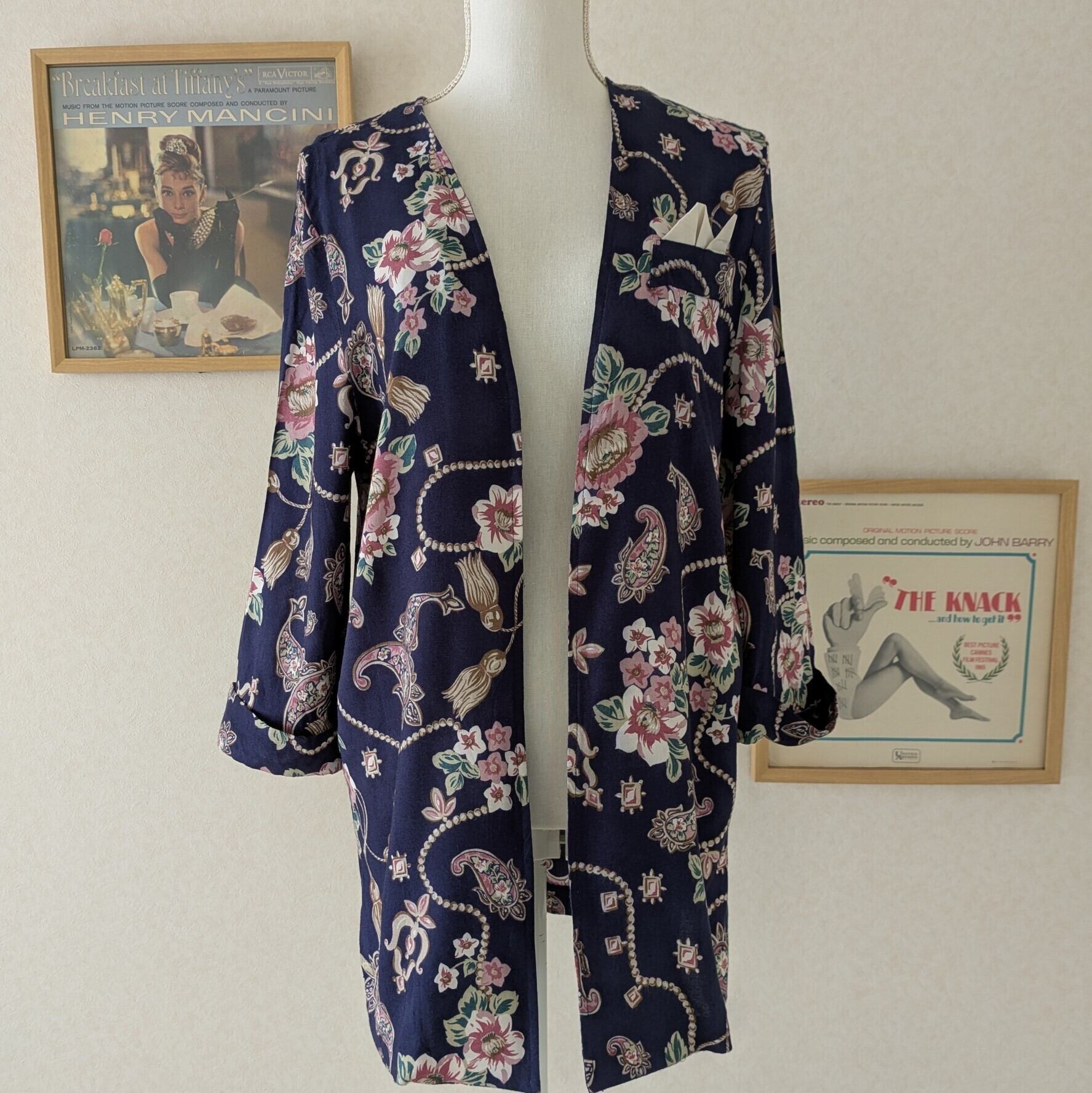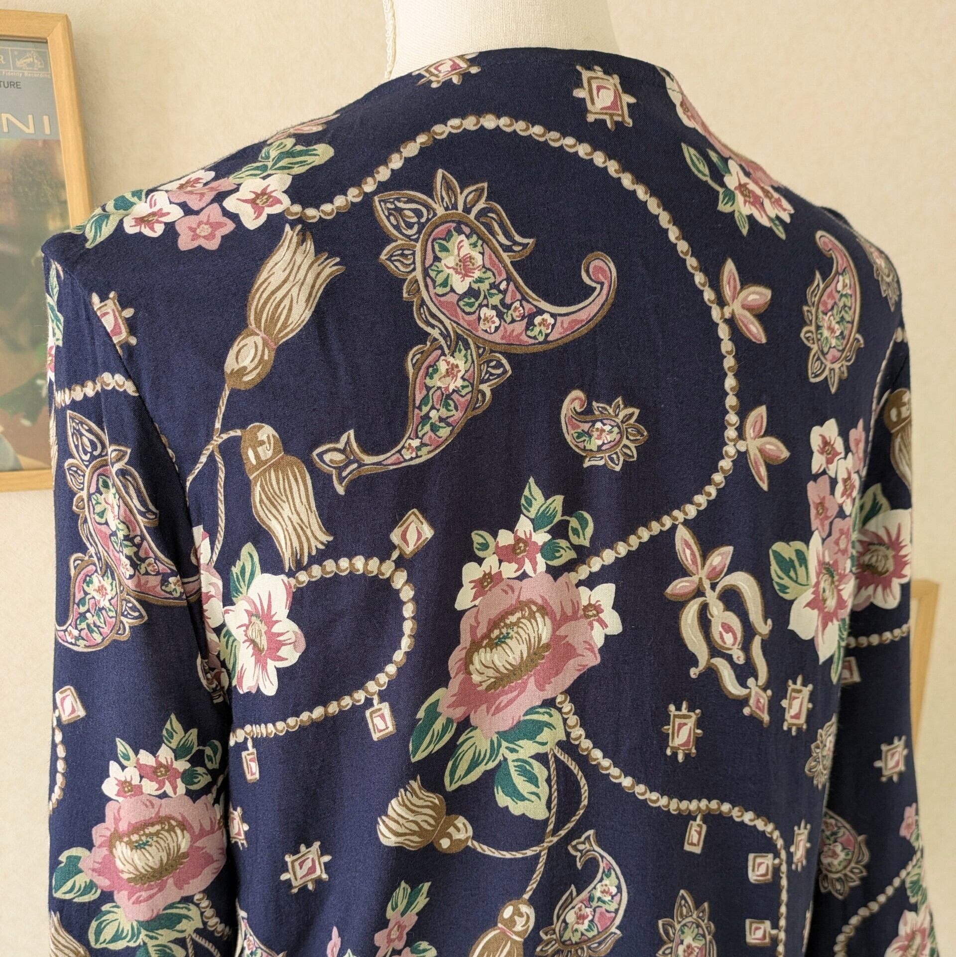 大きなジュエリーの柄がスカーフを纏っているような、なんとも色っぽいオーバーブラウスです。