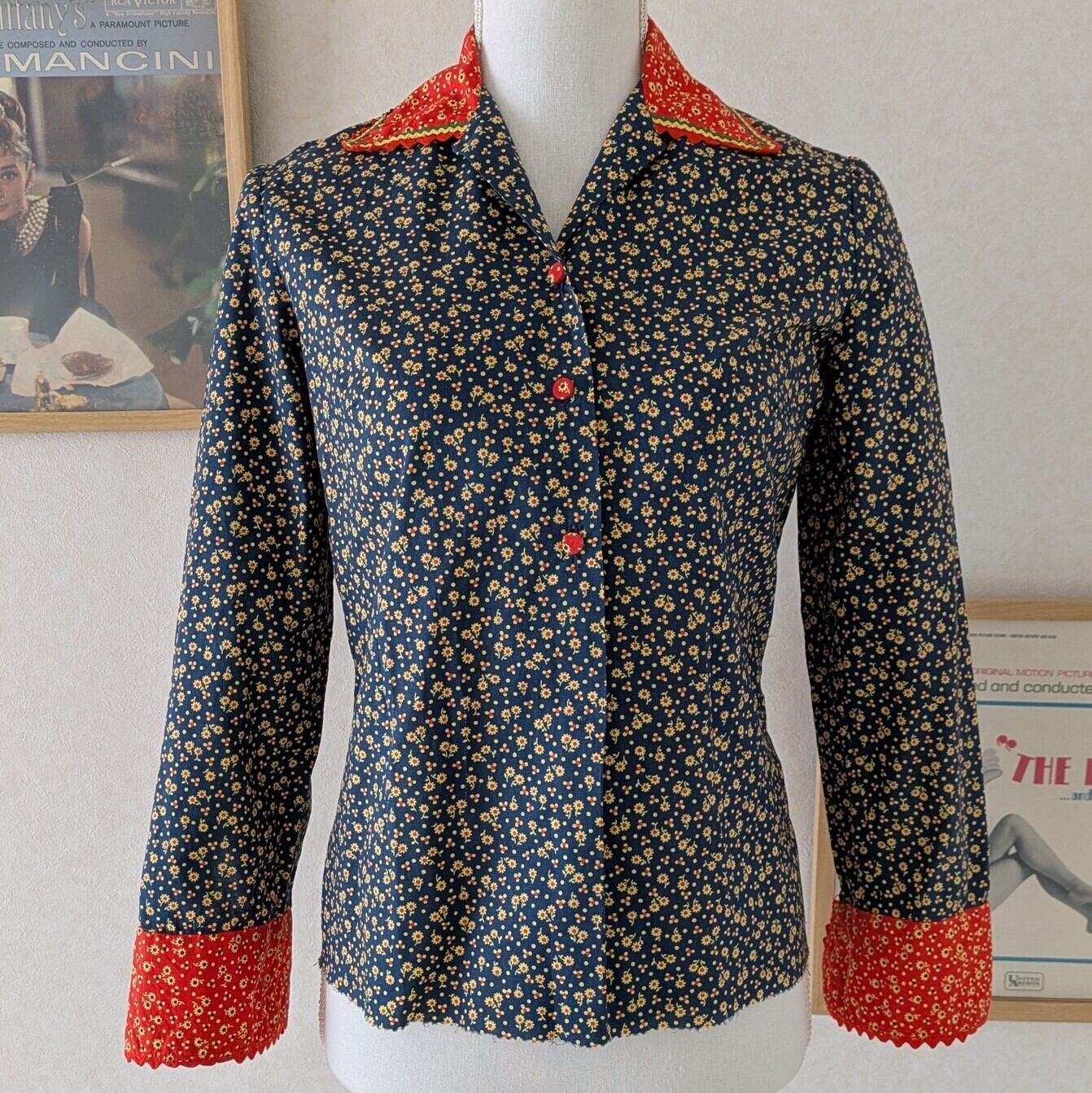レトロポップな配色がとっても可愛いハンドメイドのシャツです。